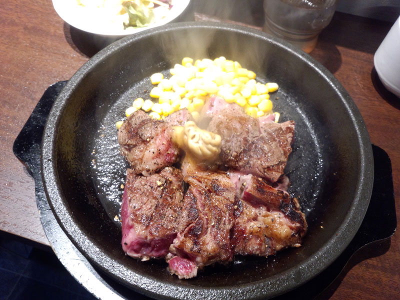 途中でかなり苦しくなったが、塩をふってステーキの味を変えてごまかす。 水も大量に飲みながらなんとか完食……