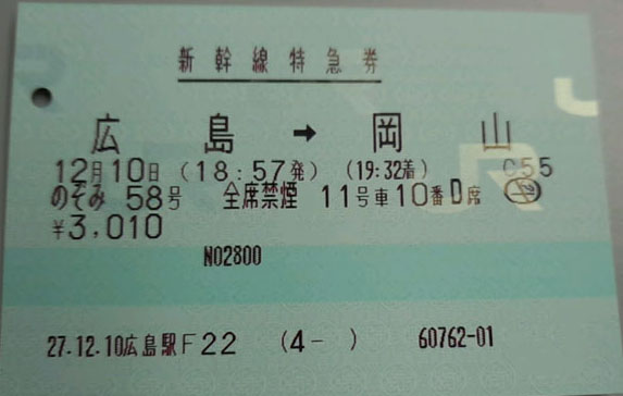 午後からはお客さんのところへ行く予定だったのだが、営業がそのお客さんと連絡が取れなくなり、待っていたのだけど、18時になっても連絡が取れなかったので、香川に戻ることに。 18時過ぎに広島事務所を出て、広島駅まで送ってもらう。