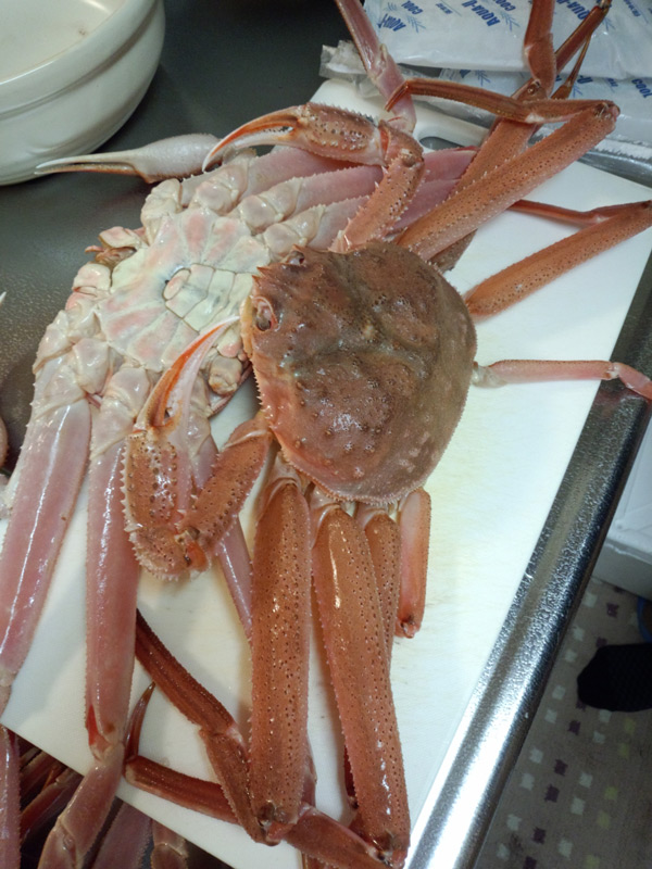 今日はカニパーティらしい。 でかいカニが6匹用意されていた。 それを捌いているのをみていたのだけど、捌き方を教えてもらい2匹捌くのにチャレンジさせてもらったが、難しいな…… 足の表面を削ぐのが怖い……