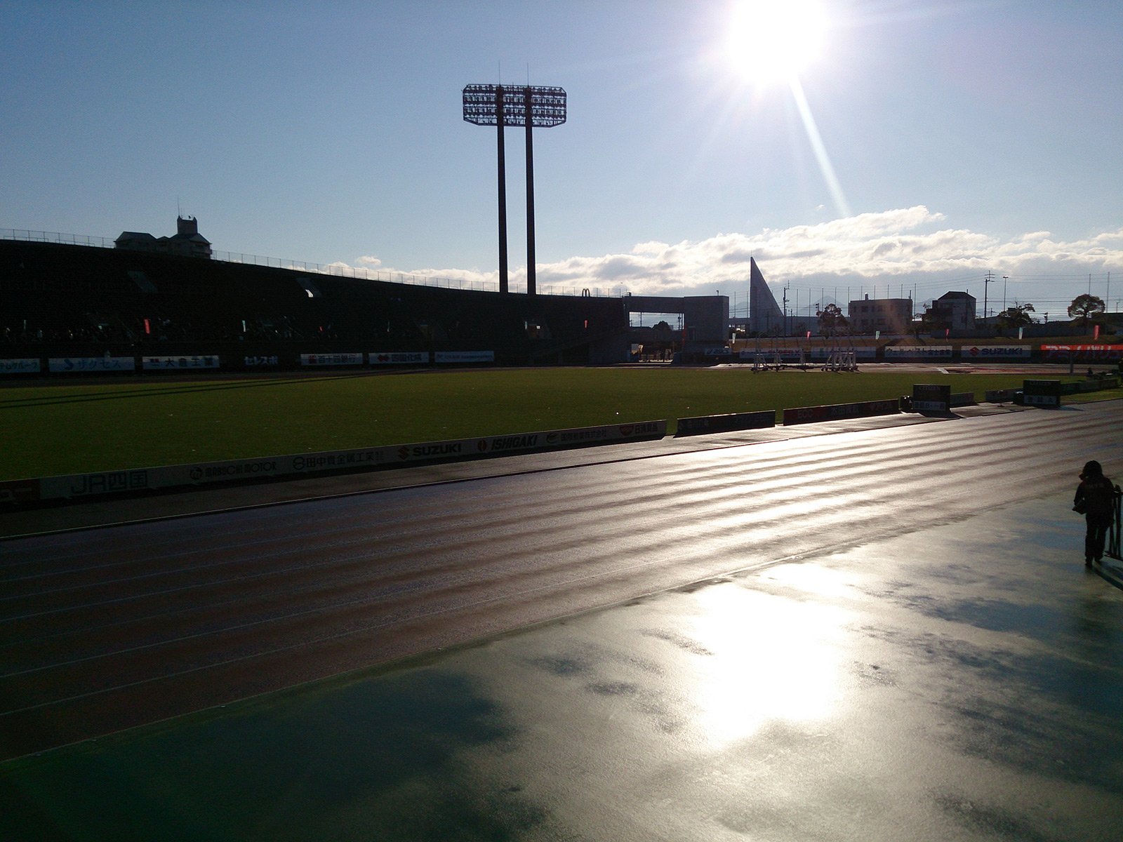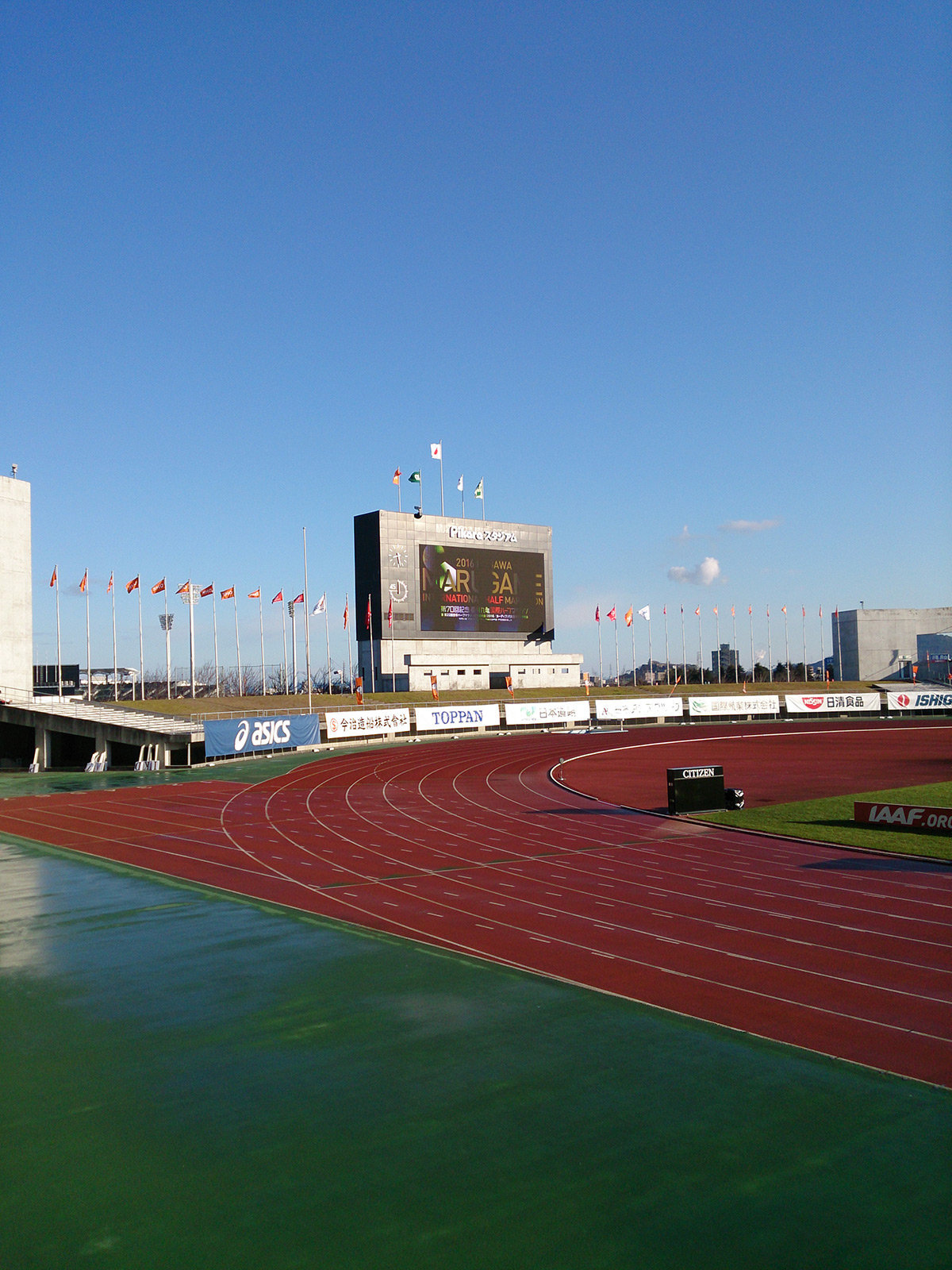 陸連登録Bと一般ランナーのスタートは10時50分。 グランドの列に並んだのが10時5分くらいなので、まだ45分近く待つことになる。 走る格好をして、上着は脱いできているのでメチャメチャ寒い…… その寒空の中45分待ち続け、ようやくスタートとなった。 15分前には陸連登録A、いわゆるトップレベルの選手たちがスタートをしている。