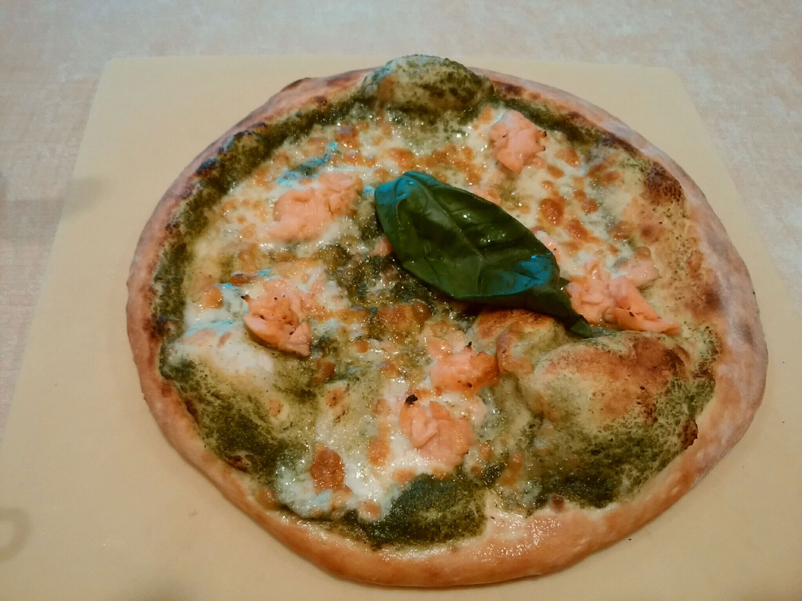 お昼はグラッチェへ。 ジェノベーゼとサーモンのピッツァを食べて、読書をする。