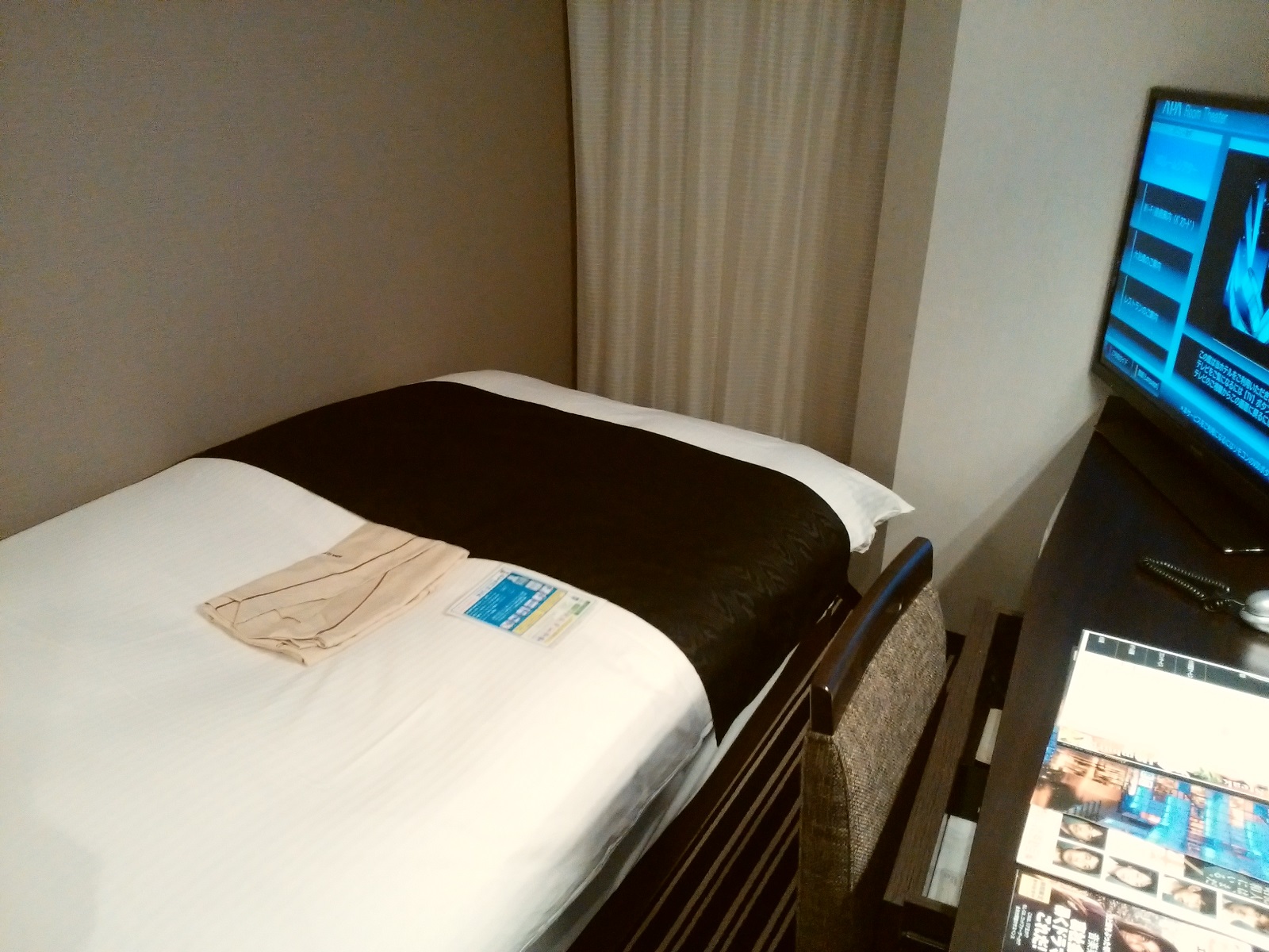 今回泊まるホテルは「アパホテル」、もう泊まるのは3回目かな。 チェックインをして荷物を置いて事務所に戻る。
