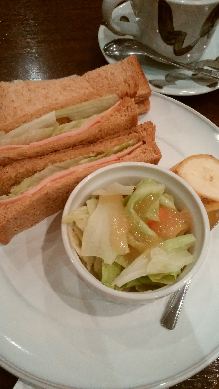バスが到着してからは朝ごはんを食べる。 「カフェ・ミヤマ」というところでBモーニングを食べる。