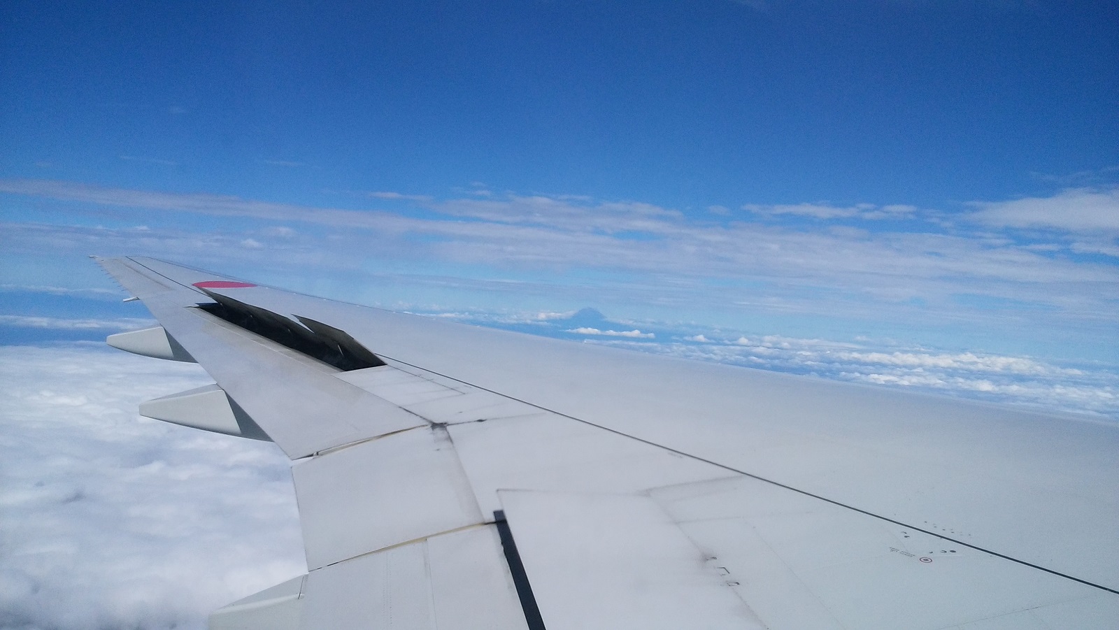 離陸~ドリンクサービスくらいまではウトウトと。 それからゲームをやったりして、富士山のアナウンスを聞いて富士山を見るが、思っていたよりずっと遠く小さかった……