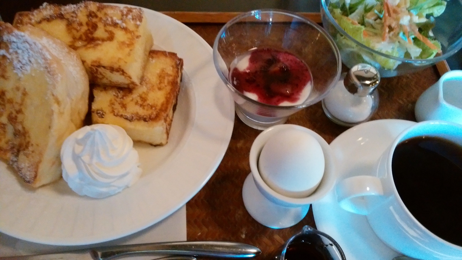 今日は水曜日なのでモーニングへ。 いつもの喫茶店で本を読みながら朝ごはんを食べてお腹いっぱい。 今日はホットサンドではなくフレンチトーストにした、あまりお腹がすいていなかったので。