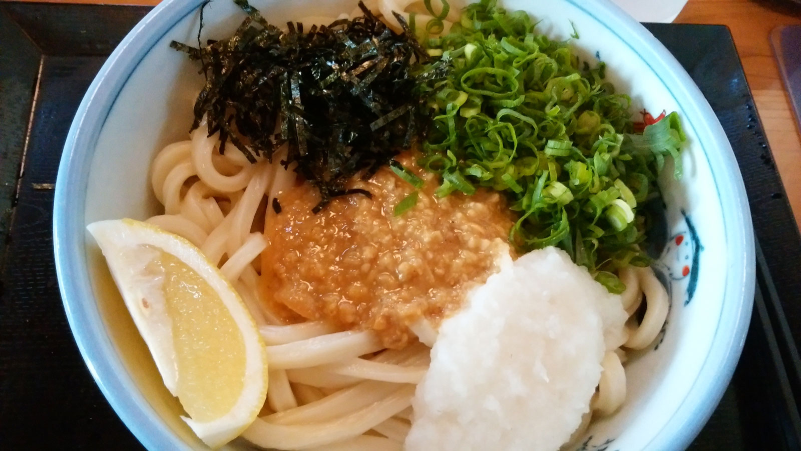 14時位なので、もう開いている店が少ないかも。 適当に車で走って、林町の「うどん田中」でネギ味噌うどんを食べる。