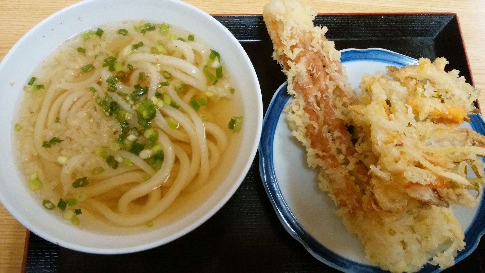 12時9分くらいの電車に乗って、瓦町についたのが12時20分くらい。 まだ食事を食べてないので、急いでうどんを食べなくてはいけない。 歩道橋の下に「花のれん」というお店があったので、かけうどんと天ぷらを急いで食べてお腹いっぱい。 もう12時35分になってしまった。 そこから早歩きで向かい、12時55分くらいに到着。 ギリギリになってしまった。