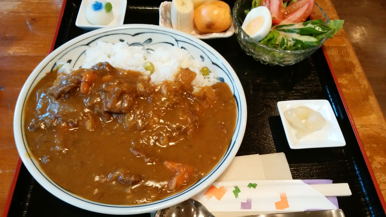 帰りに「チチ・カフェ」でお昼ごはん。 今日は店が15時半に閉まるらしく、入店したのが15時10分くらい。 まだ大丈夫か聞いたら「大丈夫」とのことだったので、カレーライスを食べる。 急いで食べてお腹いっぱい。 食後のドリンクでも飲みたかったのだけど、閉店時間過ぎているし諦めよう。
