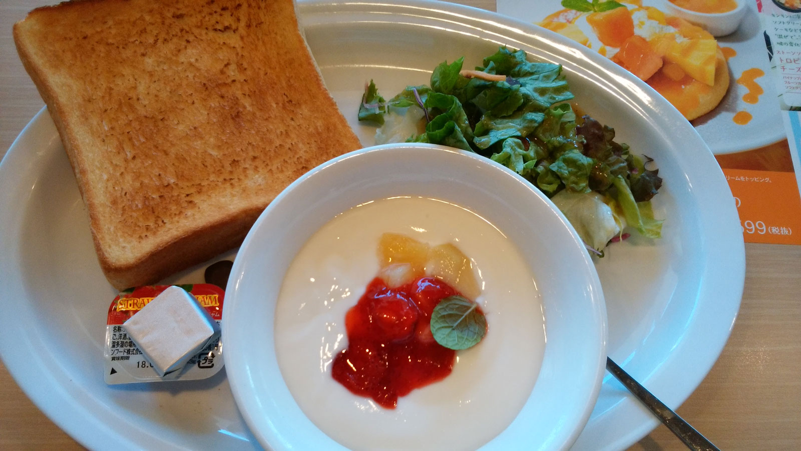そのまま自転車と徒歩でガストまで移動して、モーニングを食べる。 ガストにもモーニングセットがあって、390~590円位で食べることが出来て、ドリンクバーとスープバーつき。 これが全国チェーン店の資本力か。 内容もなかなか良いし、値段も安い。 ヨーグルトセットを食べ、三女はキッズパンケーキセットを食べて、大満足の様子だった。
