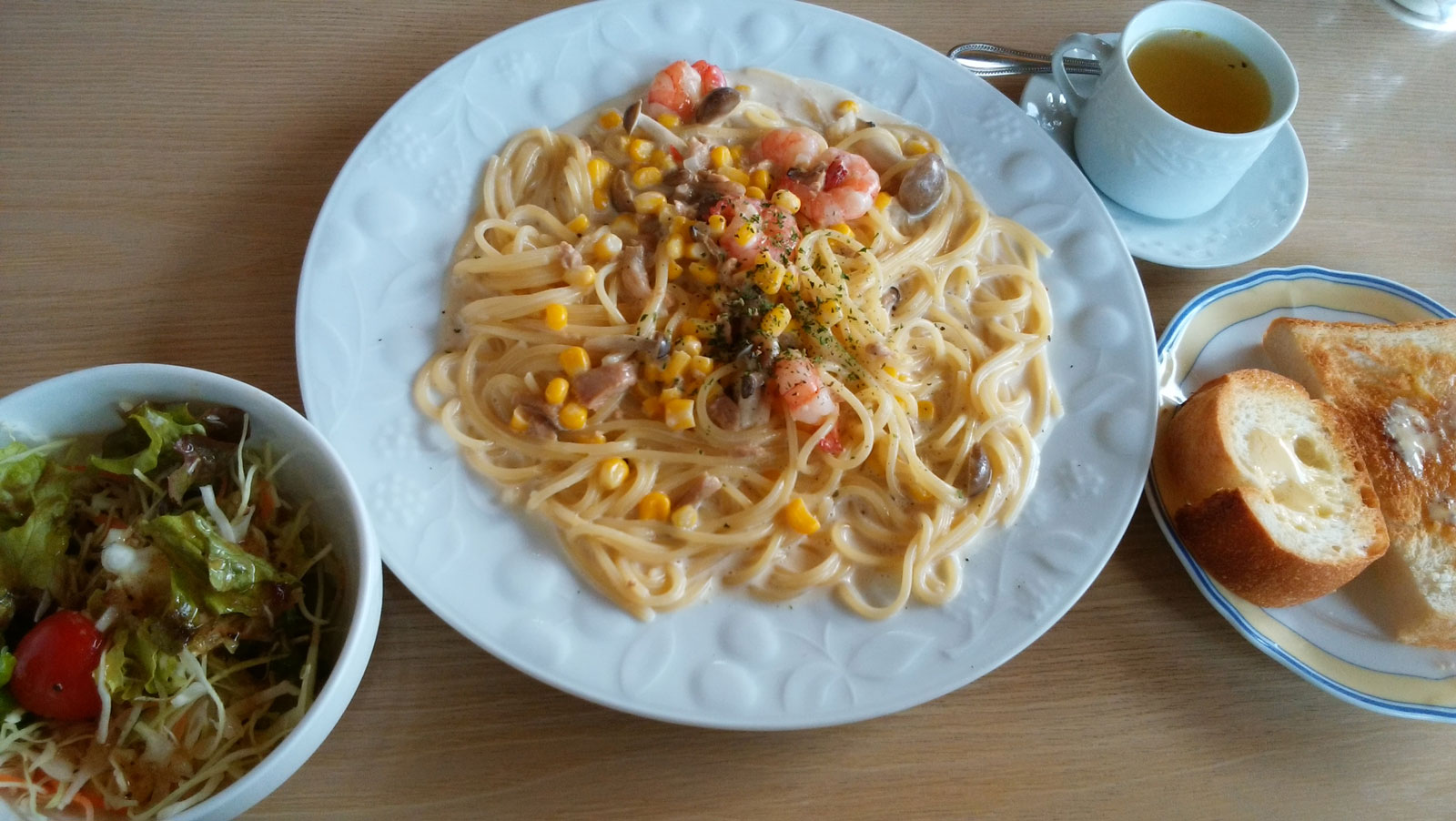 「コーヒー&レストラン オリーブ」というお店があったので、ここでパスタを食べる。