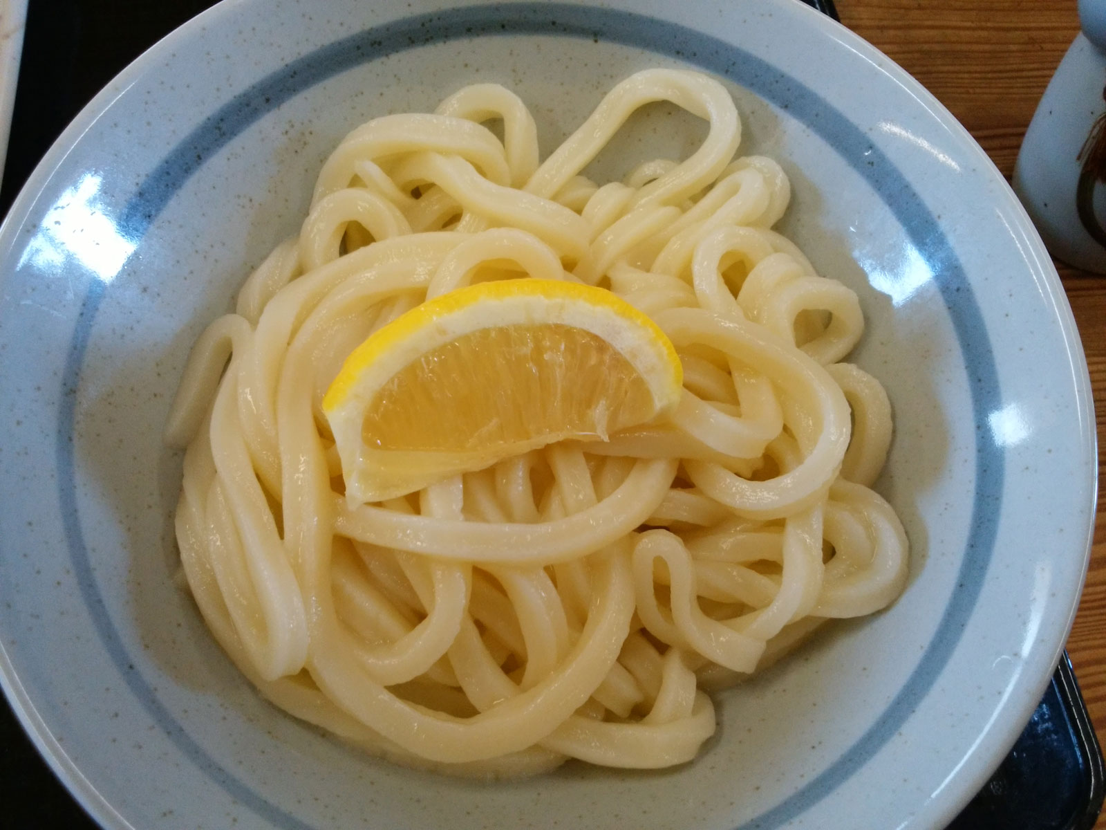 うどんはしっぽくうどんのような具が乗っているうどんで、多分3玉。 どんぶりから4cmくらい上にはみ出すほどしっぽくの具材が乗っている。 なんだこの大ボリュームはうどんは…… その人は、すぐにうどんにたどり着くためか、上に乗っている大根とかを別の器に移してから食べまくっていた。 食べるスピードもメチャメチャ早く、オレが生醤油うどんの小とおでんを食べ終えるまでに、食べ終えて出ていった。 メチャメチャ多いしメチャメチャ早い。 体を使う仕事だから、エネルギー補給が追いつかないのだろうか。