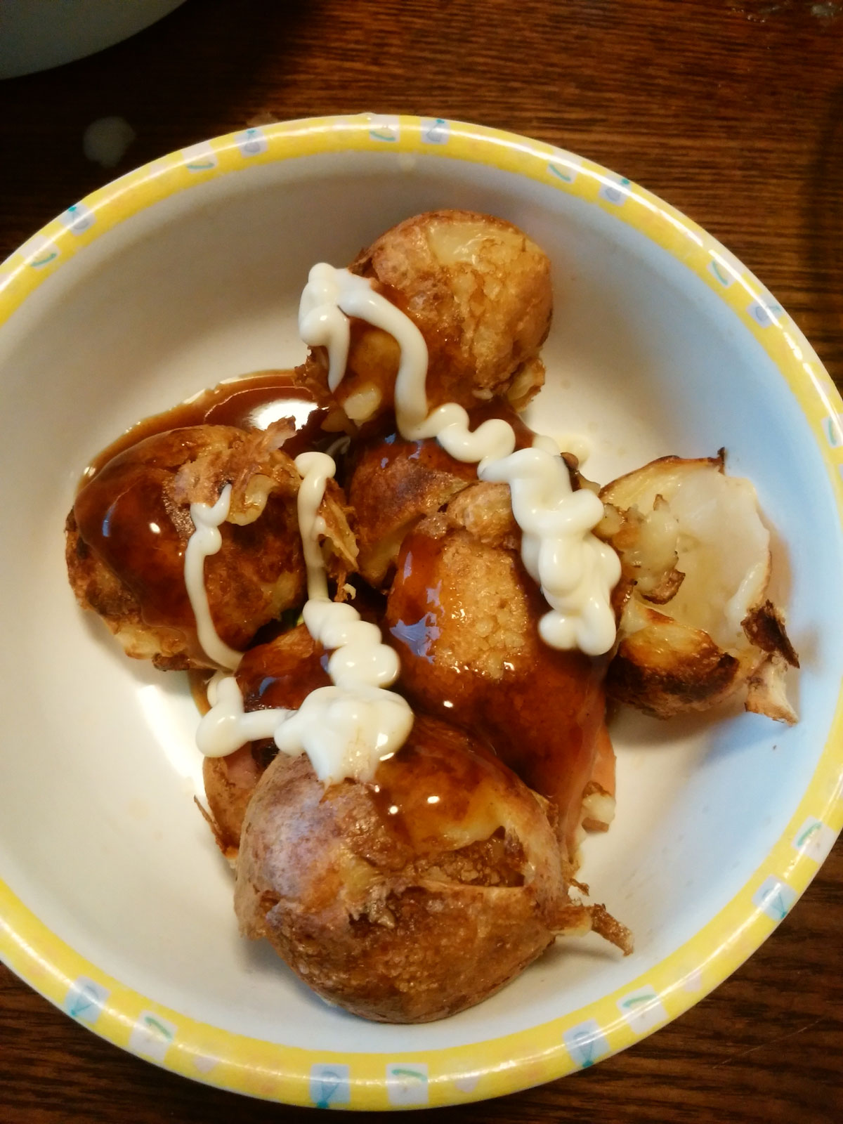 家にはたこ焼き器があるので、それで焼いて食べる。 小麦粉を260g使って、小さめだけど合計で60個ほどたこ焼きを食べまくった。