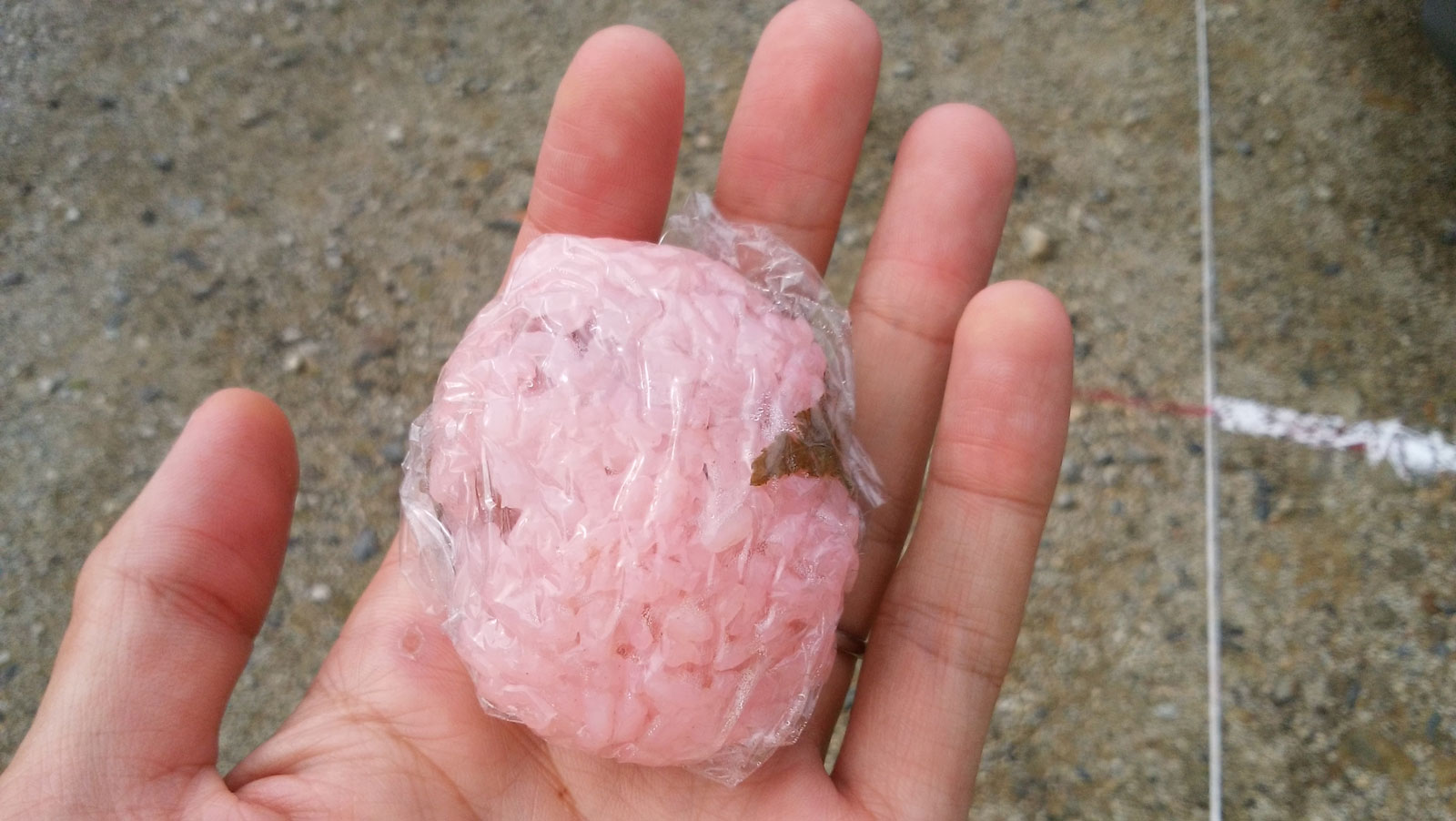 ゴール後には、地元の小学生から手作りメダルをプレゼントしてもらい、炊き込みご飯おにぎり・桜餅・伊予柑ゼリーをもらって、アンクルバンドを外してもらい、給水のコップをもらって、パイプイスに座って動けなくなる。