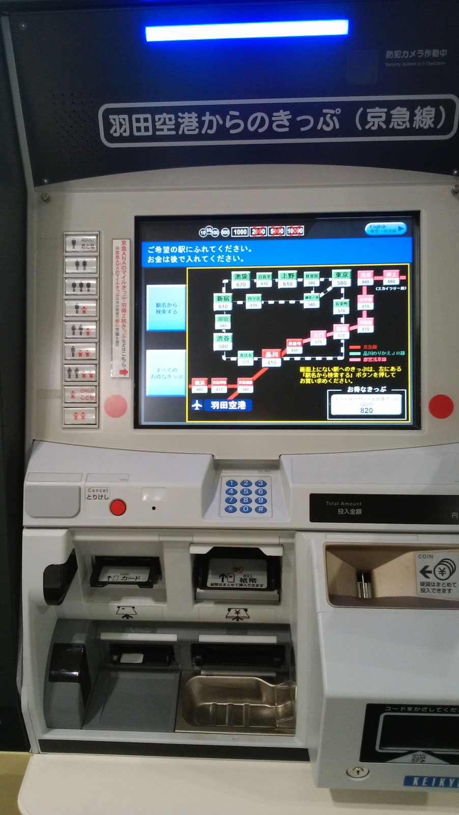 他はトイレの手洗い水道がダイソンになっていたり、待合ロビーのレイアウトが対面式になっていたりオシャレなイスが設置されていたり。 待合室には京急線の券売機も設置されていた。 羽田空港に乗り入れている路線で、これを使う場合は事前に切符が買えるので便利。 自分はSuicaを使うが、香川でSuicaが使えるようになったのはつい最近だし、持ってない人も多いだろうから、事前に買えるのは素晴らしい。