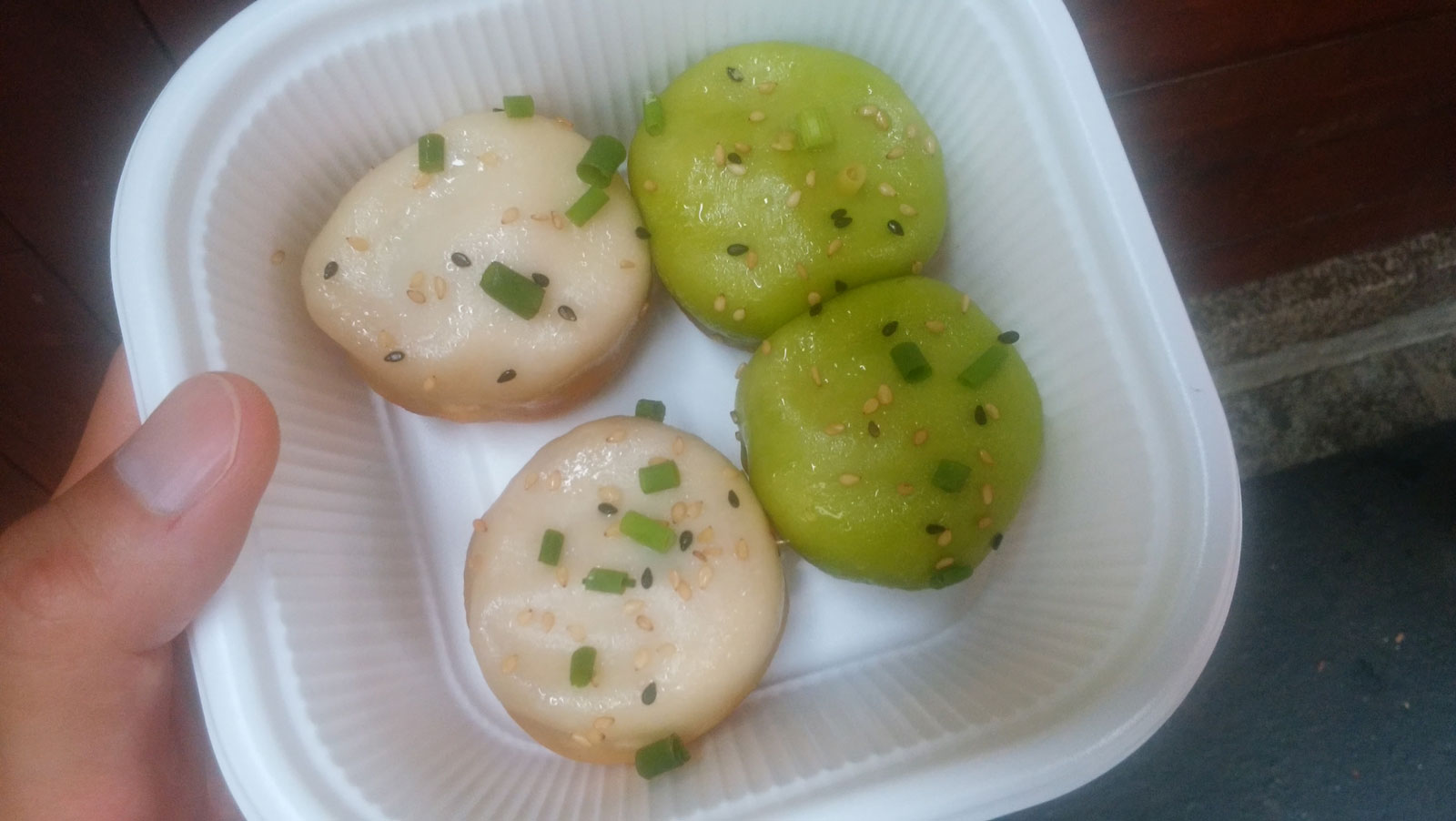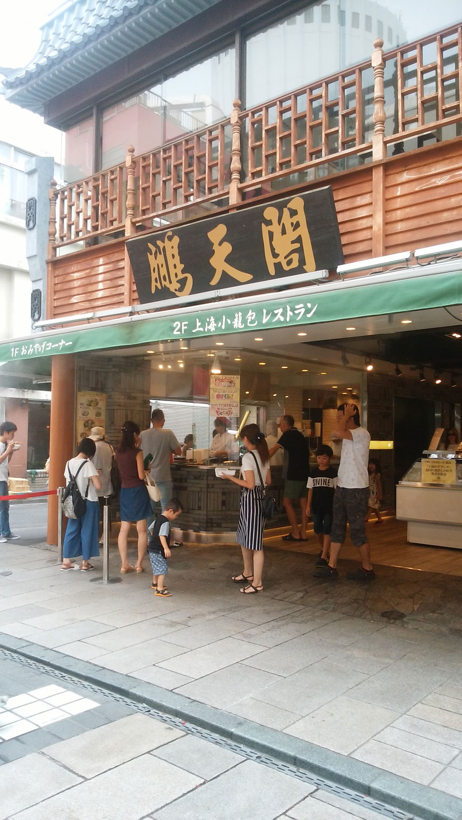それから中華街へ。 サンタクロースの大きな置物がある店でお粥を食べようと思っている。 山下公園側の入口から入って適当に歩いていると、つい先日「モニタリング」という番組で「松田翔太と木村文乃が変装して一般人にバレずに満喫できるか?」という企画がやっていた。 それの舞台がたまたま中華街で小籠包を食べていた。 その「鵬天閣」というお店が目の前にあるではないか! せっかくだし、ほとんど並んでないので食べてしまおう。 メニューは4個入り~しかなくて、4個も要らないのだけど普通の2個+海鮮2個の4個入りを注文。