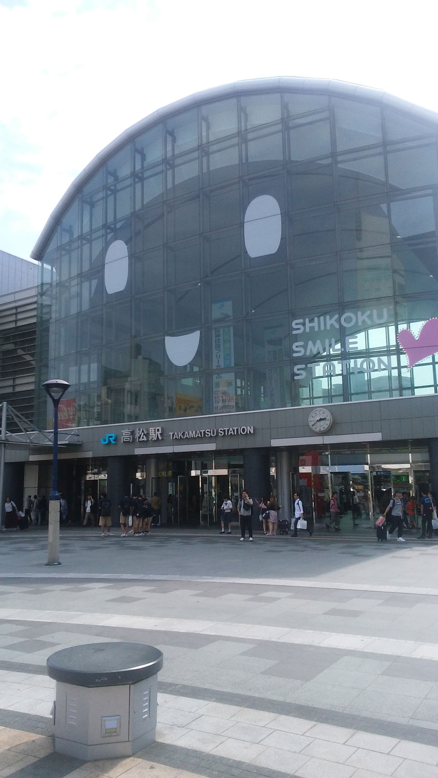 プール後は高松駅に移動して、構内のロッテリアでハンバーガーを食べる。 高松駅は旅行者で賑わっていた。