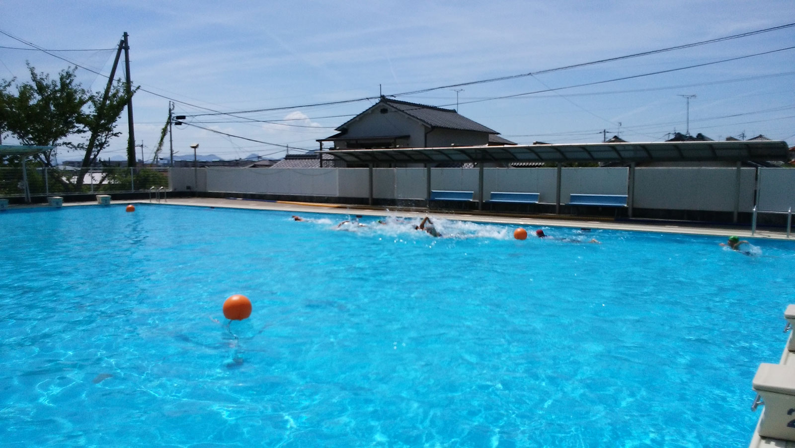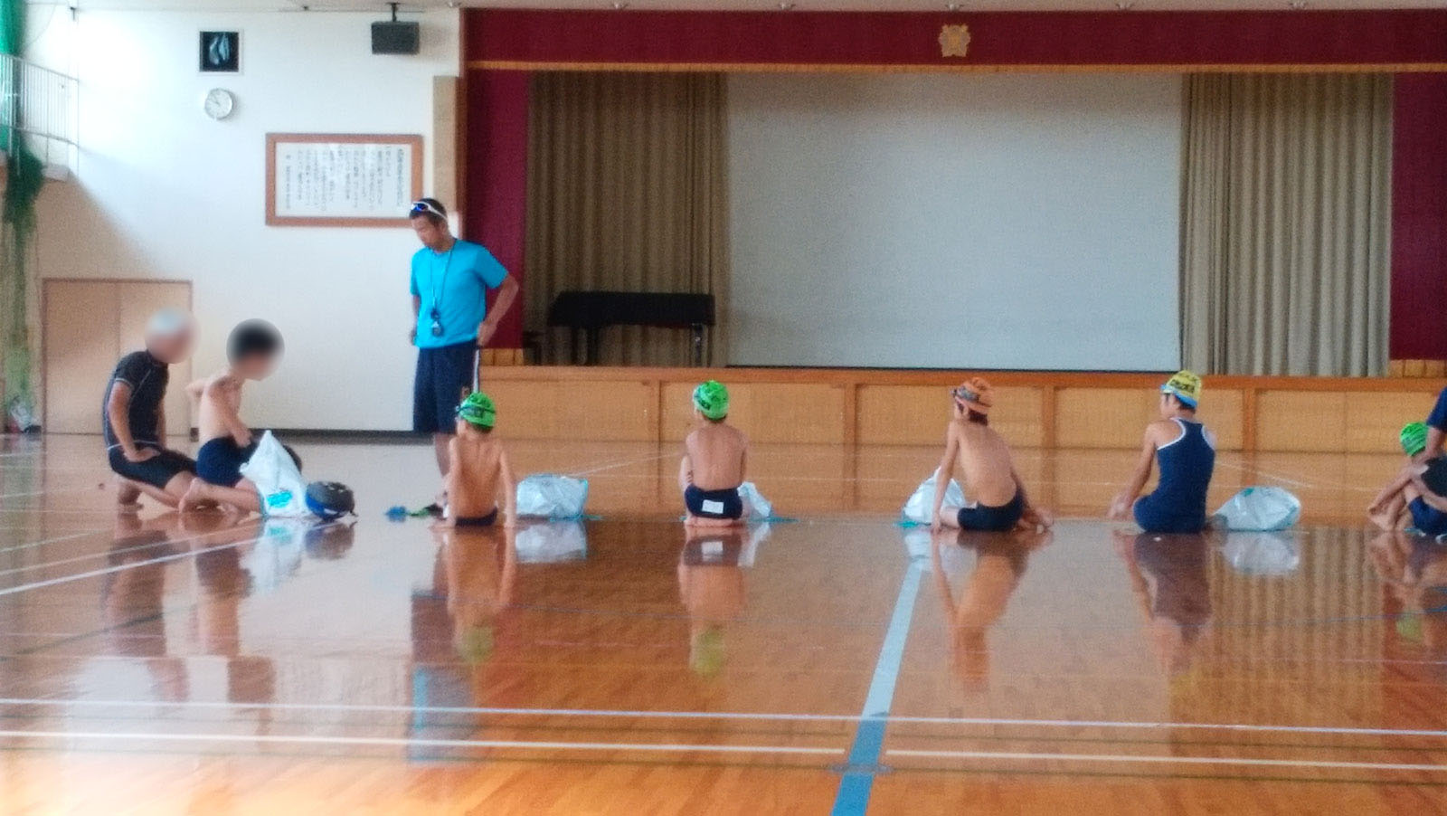 そしてスイムの練習。 25mを何本か泳いで、イルカジャンプみたいな動作などを練習していた。