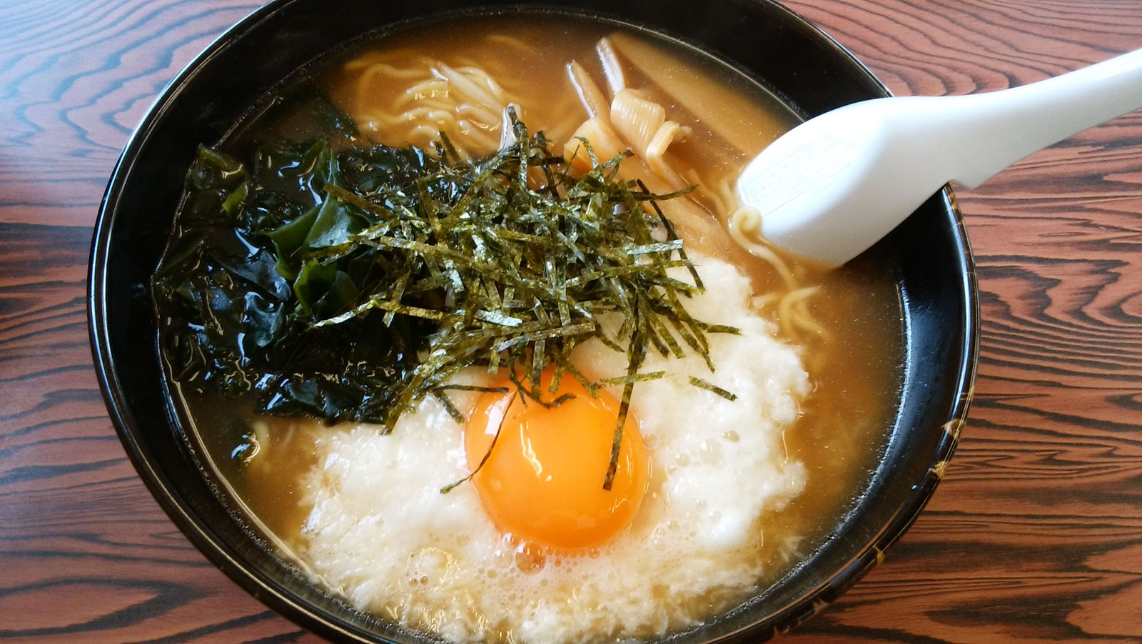「山かけラーメン」を食べた。 トライアスロンでのエネルギー消費量が多すぎてお腹いっぱいにはなってないけど美味しかった。