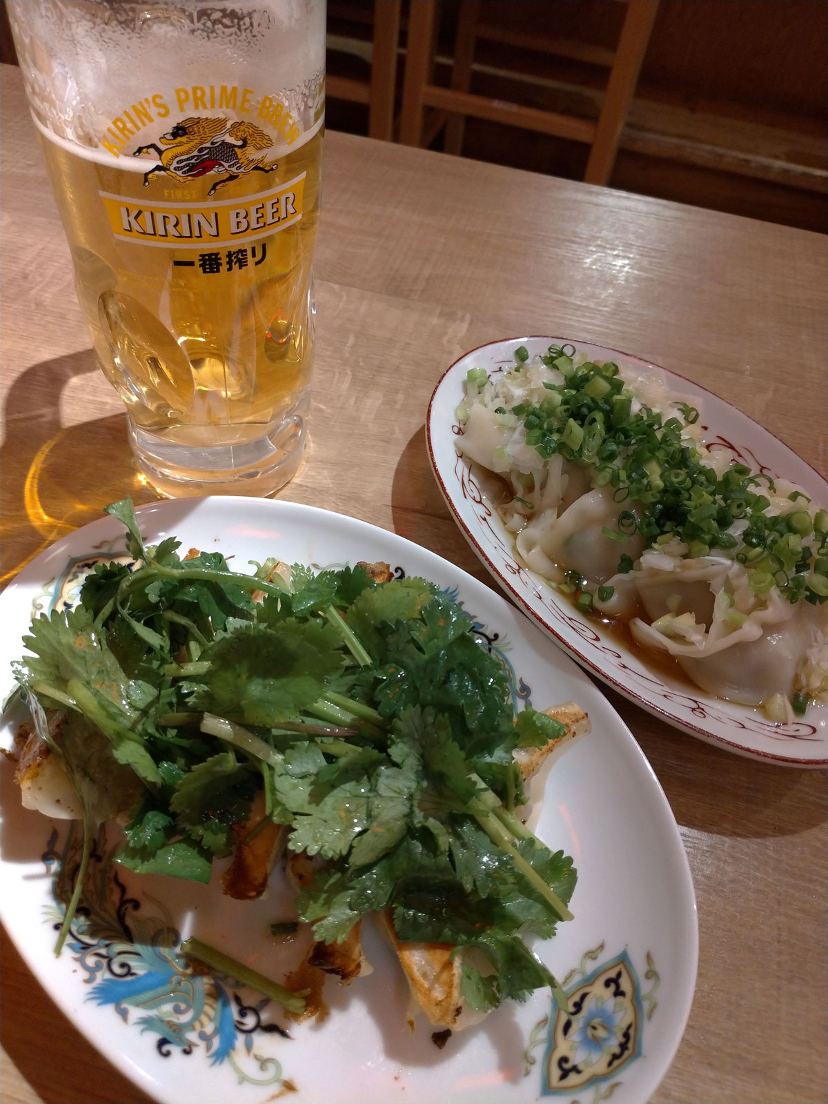 6時15分くらいに横浜駅に到着。 こんな早朝に到着しても、観光できそうな場所はまだ開いていないし、何をするかが全然決まっていなかった。 とりあえず西口をうろうろしていたら、24時間オープンしている「いち五郎」という餃子屋があったので、そこで朝ごはんを食べる。 先日ベトナムでたくさん食べる機会のあった「パクチー」が山盛り乗ってる餃子があったので、それと水餃子とご飯とビールを注文。 朝6時台からビールを飲んでしまうなんて、ちょっと罪悪感が…… お客さんでスーツを来て、結構疲れた感じの人たちが食事をしていたのだけど、多分夜通し飲んできた感じだな…… 仕事の悩みを上司っぽい人と真面目に語り合っていた。