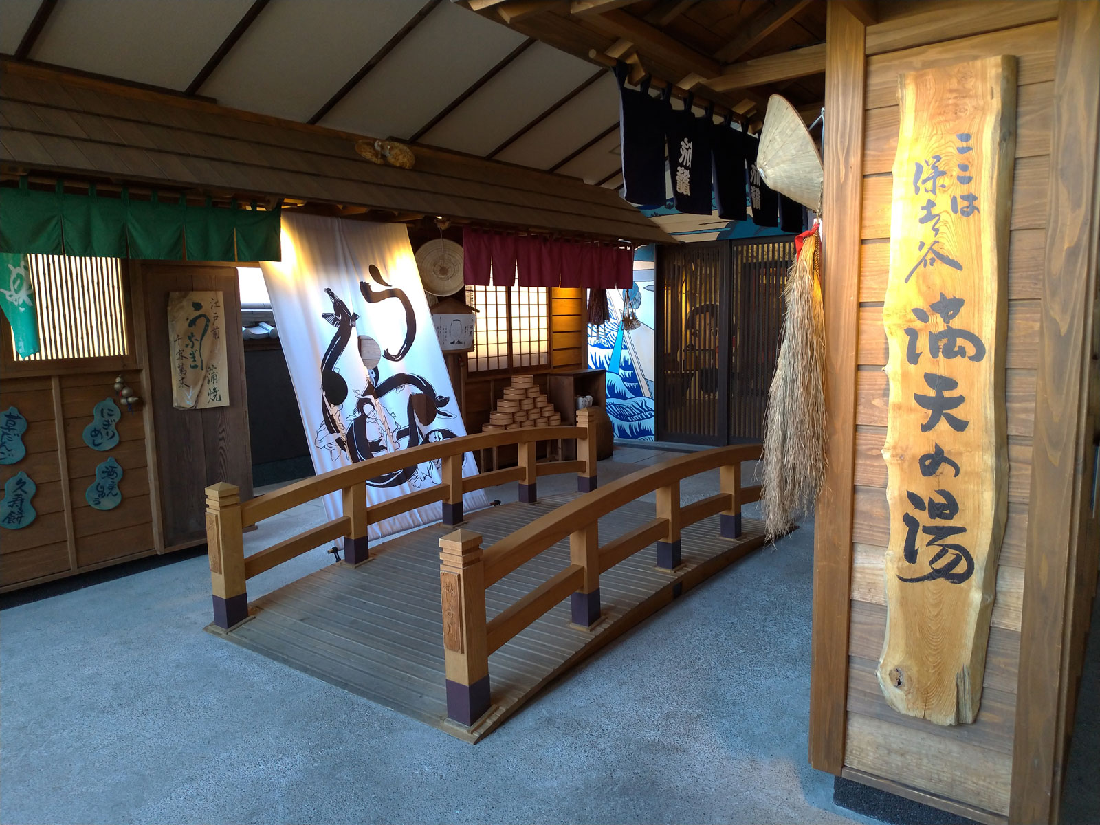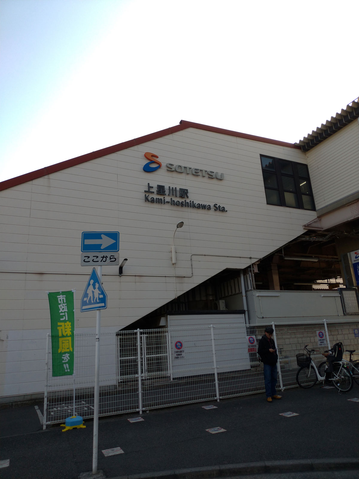 食後は風呂に入りたくて、スーパー銭湯みたいなやつを調べていたのだけど、都会はサウナが多くて、なかなか普通のところが無いな。 サウナだと、風呂に入るだけで2,500円とかかかるので、それはちょっと高すぎる…… 横浜から電車に乗らないといけないけど、相鉄という路線の「上星川駅」というところに「天然温泉 満天の湯」というのがあったので、そこに向かう。 相鉄という路線に乗ったの初めてだ。 横浜駅から10分くらいで上星川駅に到着し、駅前にこの入浴施設があった。