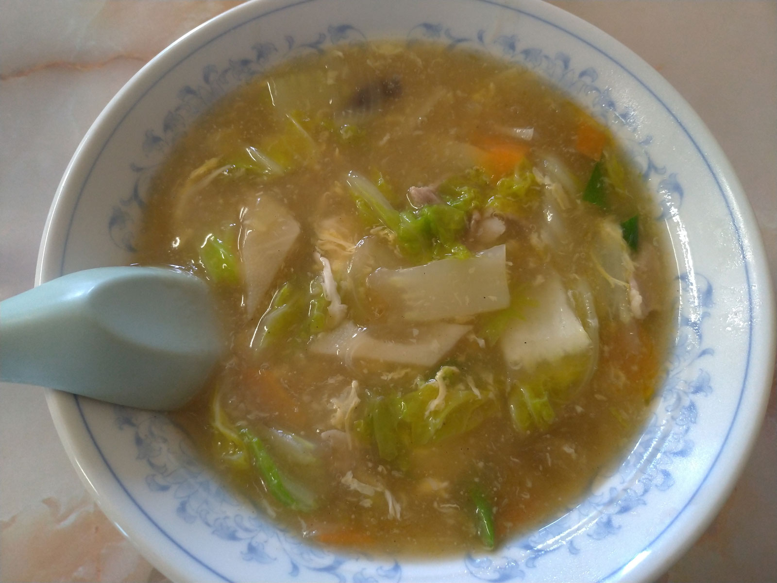 だが、70歳位のご主人は、おとなしめのとても優しそうな人で、いつも美味しい料理を提供してくれる。 値段も安いし、今日も三女のラーメンが390円で、自分のあんかけラーメンが570円で、960円で2人前だしな。