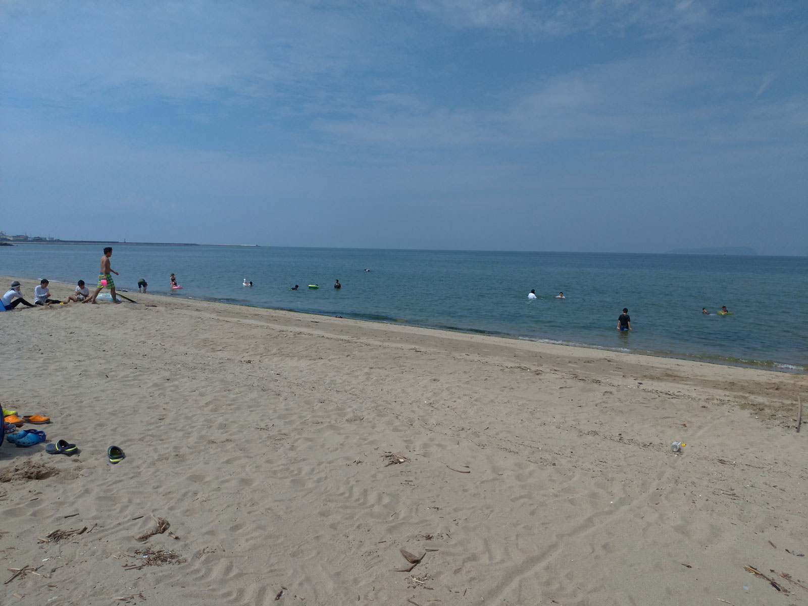 9時位に出発して、ハローズに寄って飲み物やお菓子を購入。 高松西ICから高速道路で豊中ICで下りて、有明浜海水浴場を目指す。 まだ朝早かったからか、海水浴客は10組くらいしかいなかった。