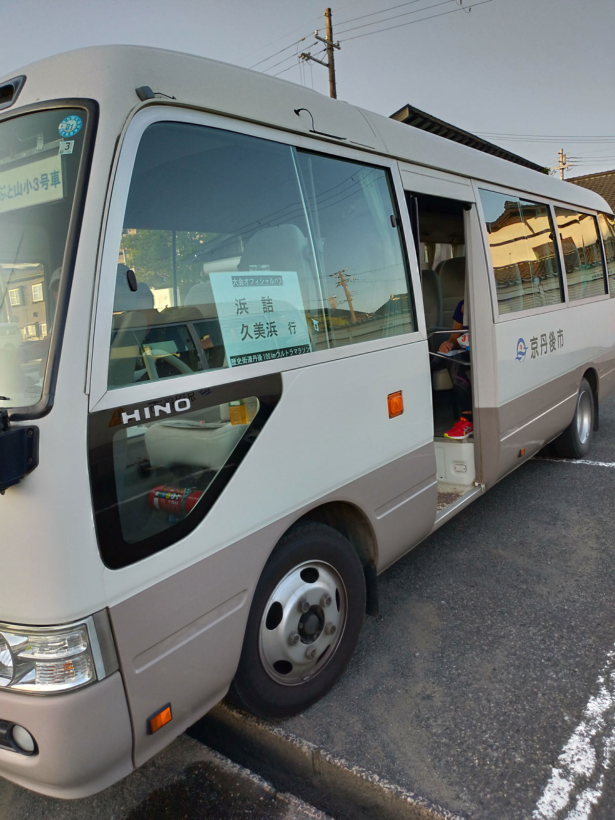 晴れ朝6時半くらいに起床。 同じ部屋の他の4人は既に起きていて、表に出て100kmの部の選手を応援したりしていた。 自分も旅館の前の道に出て数分応援する。 100kmの部は、朝4時半にアミティ丹後をスタートしている。 この旅館の前は22~23kmくらいの地点だと思う。 今、目の前を走っている選手たちは、22kmを2時間で走れる選手ということになる。 22km2時間って、サブ4のペースよりちょっと速いペースなので、キロ5分30秒台で走っていることになる。 100kmのレースをそのスピードで走るということは、かなり速い人たちなのだ。 皆らくらく走っているので勘違いしてしまいそうだが……