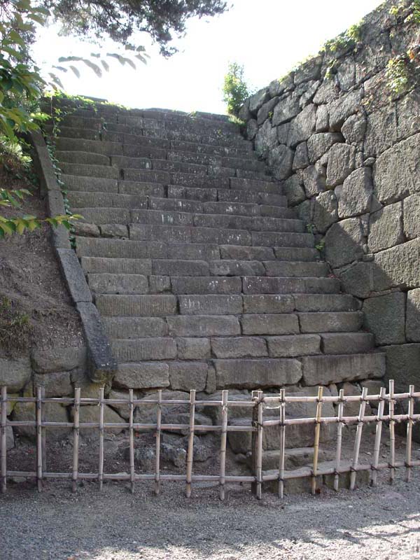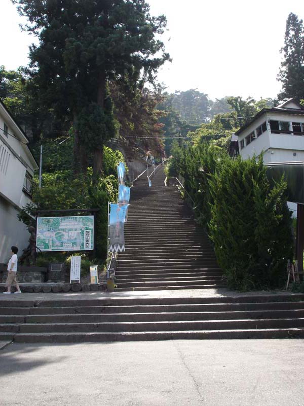 ここは市営の無料駐車場があった。 飯盛山にあがるまで階段が200段近くある。 見上げるような高さ。 すぐ横にエスカレーターがある。 しかし有料、値段はなんと……250円もする! 高すぎ。