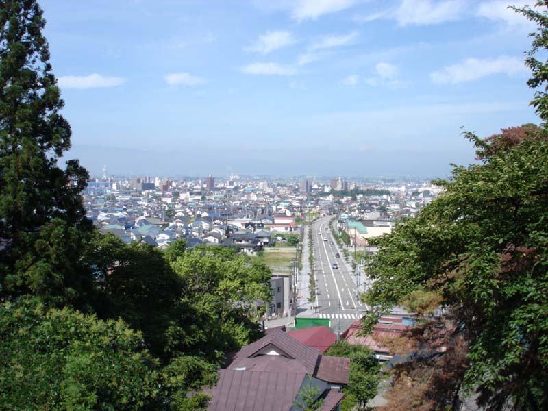 登りはすっごいきつかった。 登板車線があって助かった。 くだりはすっごい気持ちよかった。 ガソリンがもったいないので、エンジンを切って重力に身をまかせて進んでいった。 それでも10kmくらい走ることができた。 だんだん街中に入っていき迷うことなく福島県庁を発見した。