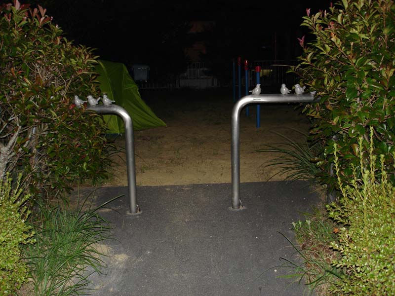 あたりはきょろきょろしながら走る。 反対車線に小さな公園発見! さっそく行ってみる。 すると住宅地の中にある公園で、水もトイレもないけれどテントを張ることはできそう。 よし、今晩はここに泊まろう。 「道の駅 ならは」までもあと2kmくらいなので、とりあえずそこに向かう。 道の駅のトイレで洗顔と歯磨きをすませ、再び公園まで戻ってくる。 隣に家が建ってるのであまり大きな音を出さずにテント設営。 さっそくもぐりこむ。 あぁ今日は大移動したなぁ。 福島県の左下から真ん中の上、そこから右下へ。 今日はずっと福島県だし。
