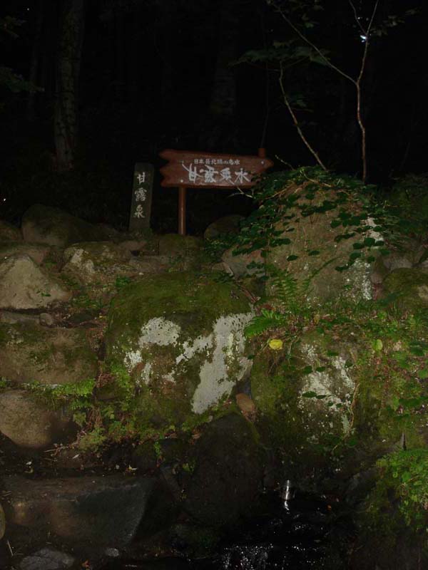 4時に起きて、出発が5時だとする。 それから11時間だと16時。 もう夕方だ。 最低でも18時までに降りてこないと暗くて帰ってこられなくなる可能性もある。 なのでかなり余裕をもって時間を決めた。 絶対忘れたらいけない飲み物、食料、カメラをザックに詰めて、念のためレインコートももった。 暗いためヘッドランプも。 それとタオル、帽子。 そして4時35分出発。 行きは6時間……しかも登るにつれて辛くなってくるらしい。 だんだん傾斜が急になってきて、9合目からが一番辛いらしい。 イヤなコースだなぁ。 少し歩くと3合目に到着した。 「日本最北端の名水:甘露泉」というのがあった。 飲んでみたらとても冷たくて無味。 かなりおいしい! 無味っていうのがいいね!