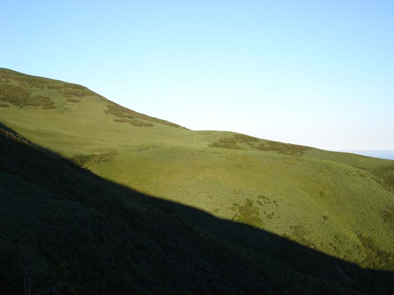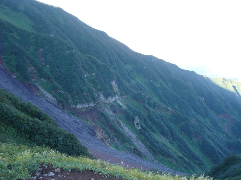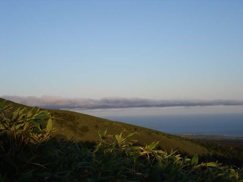 午前4時起床。 今日は山に登るため早く起きた。 夕べはかなり厚着をして寝た。 ズボン2枚、上着4枚、靴下、シュラフカバーを装備して寝た。 かなり暑かった…… 思ったよりも効果があったのがシュラフカバー。 テント内の空気とシュラフとの間に一層作ってくれるのでかなりシュラフ内の温度が保たれた感じがした。 シュラフカバーつければ、普通の格好で寝ても大丈夫そうかな。