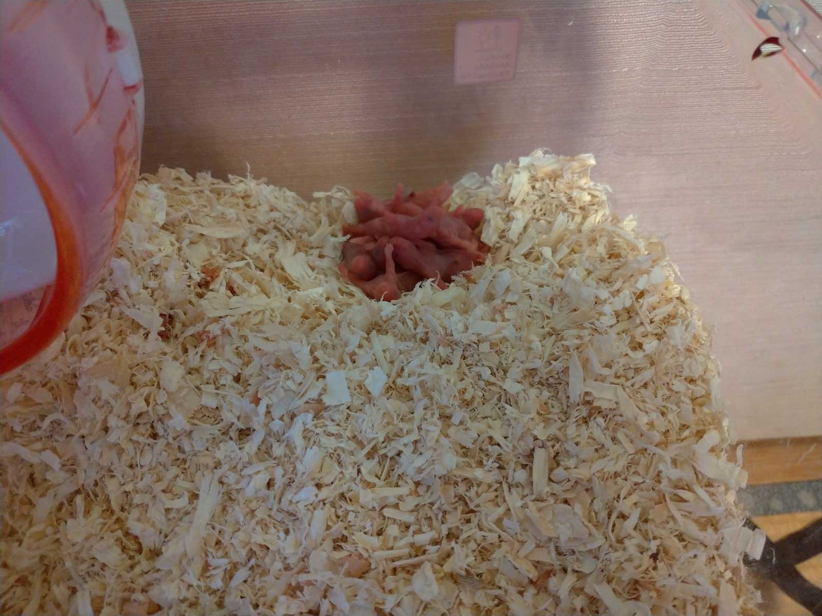 それと、朝、ハムスターが赤ちゃんを9匹生んでいた。 いつの間にか妊娠していたようだ。 昨夜寝るまでは何も起きてなかったのに。 いつも柵を噛みまくったりしていたのに、赤ちゃんが生まれた瞬間から母親になって育児をしている。 赤ちゃんも目も見えないし自分で自由に動けないのに、お母さんのおっぱいを探している。 動物の本能はすごいな。 こうやって考えると人間は甘やかせられすぎている気もする。
