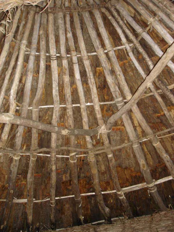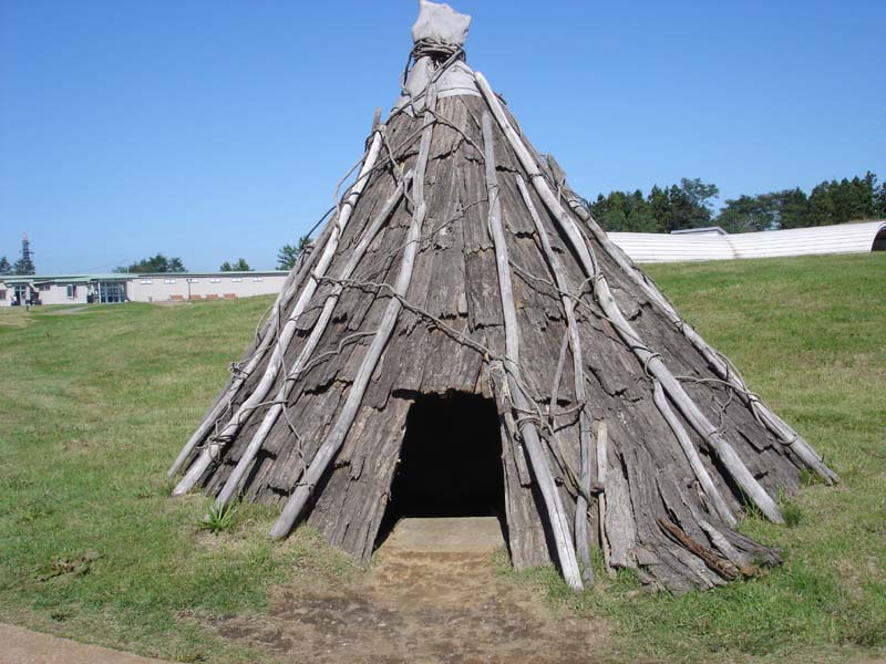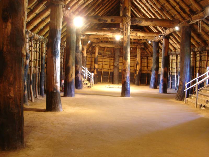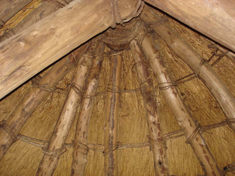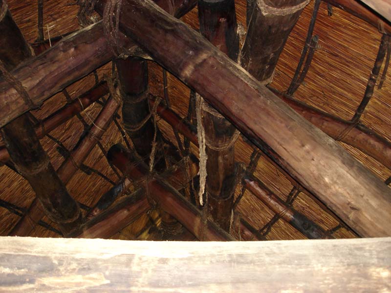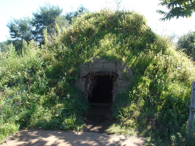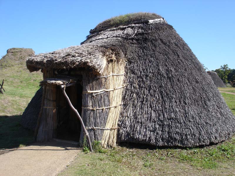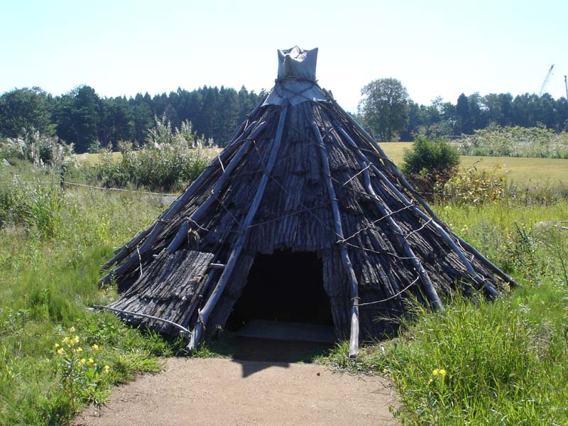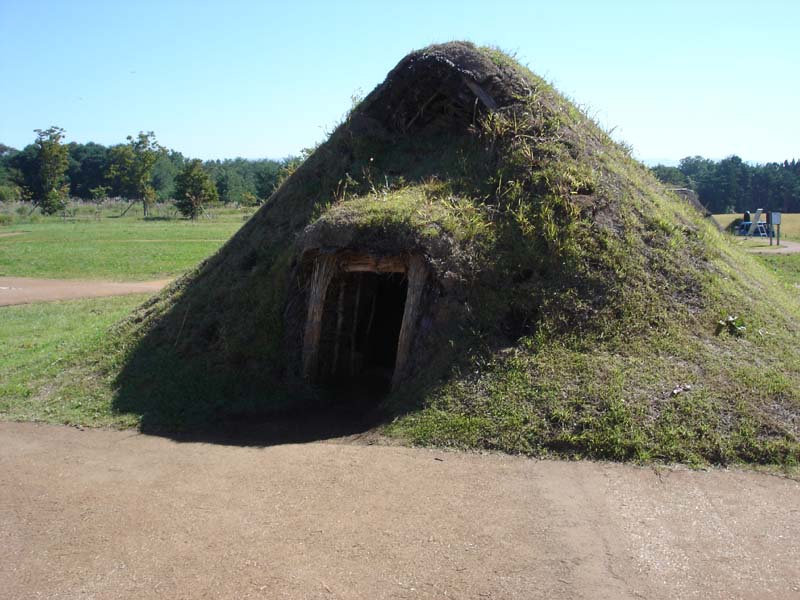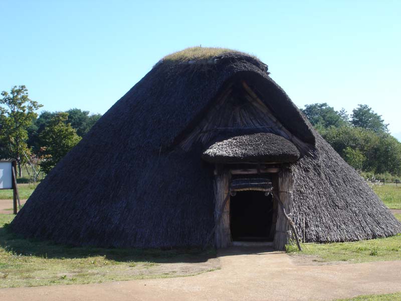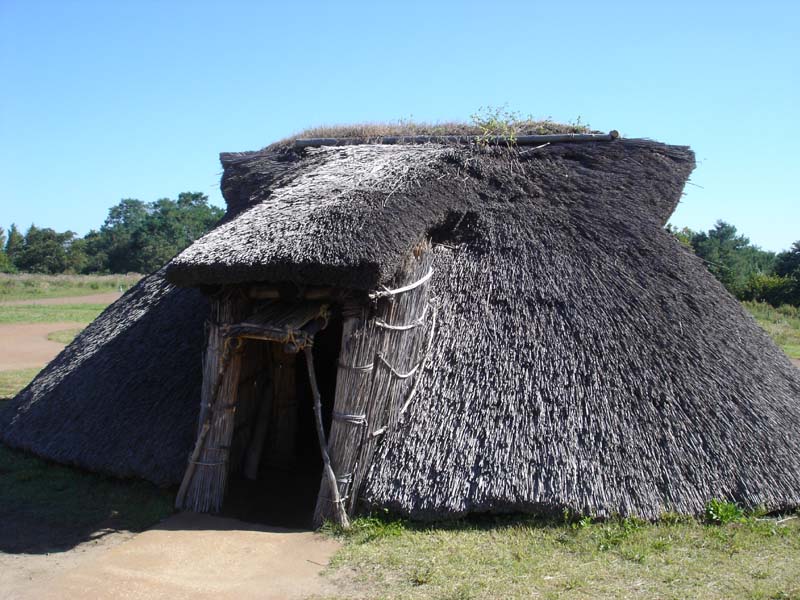 小学校か中学校のころ社会の授業で習った、昔の家がたくさんある。 雨が降ったら雨漏りしそう…… 家の中は狭いし。 1つの家で5畳くらいだろうか…… 床は土だし、昔の人はここに横になって寝ていたのかなぁ。