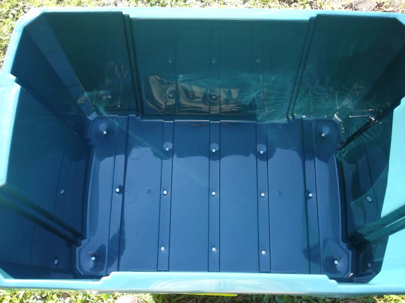 取り付け方をいろいろ悩んだ…… とりあえずコンテナを買うか。 今のものより横幅が2倍近くあるのを購入した。 どうやって付けるかなぁ。 コンテナが歪まないように底に板を敷くかな。