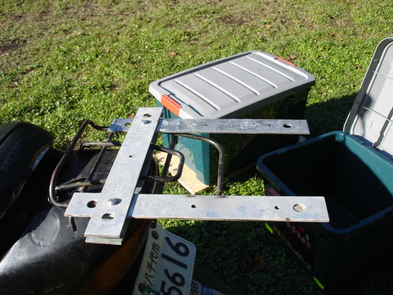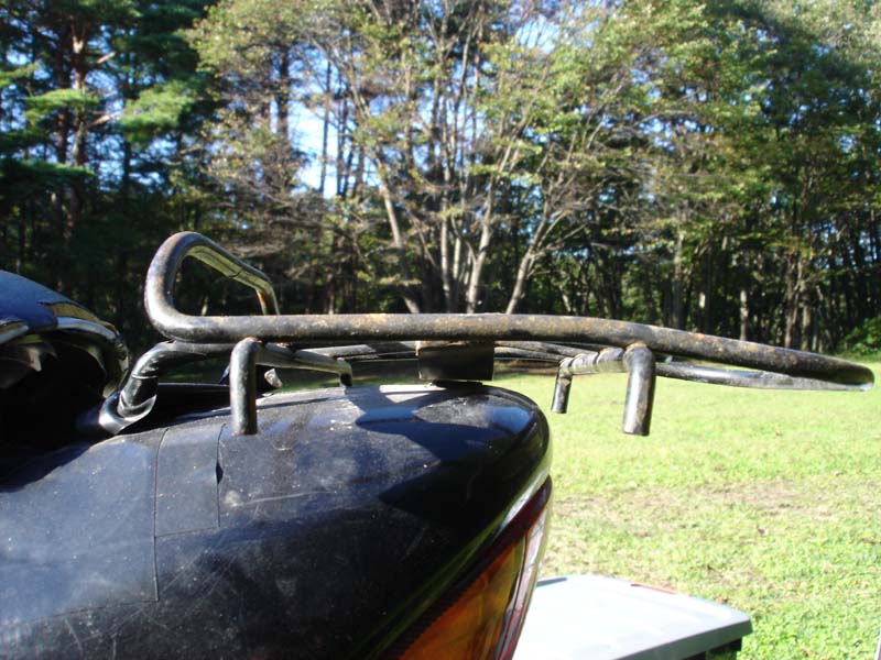 とりあえずとりはずしてみる。 バイクの後ろの金具がかなり曲がっている。 こうなったら折れるのは時間の問題…… それとこのコンテナは少し小さい。 もっと大きいのに買い換えよう。
