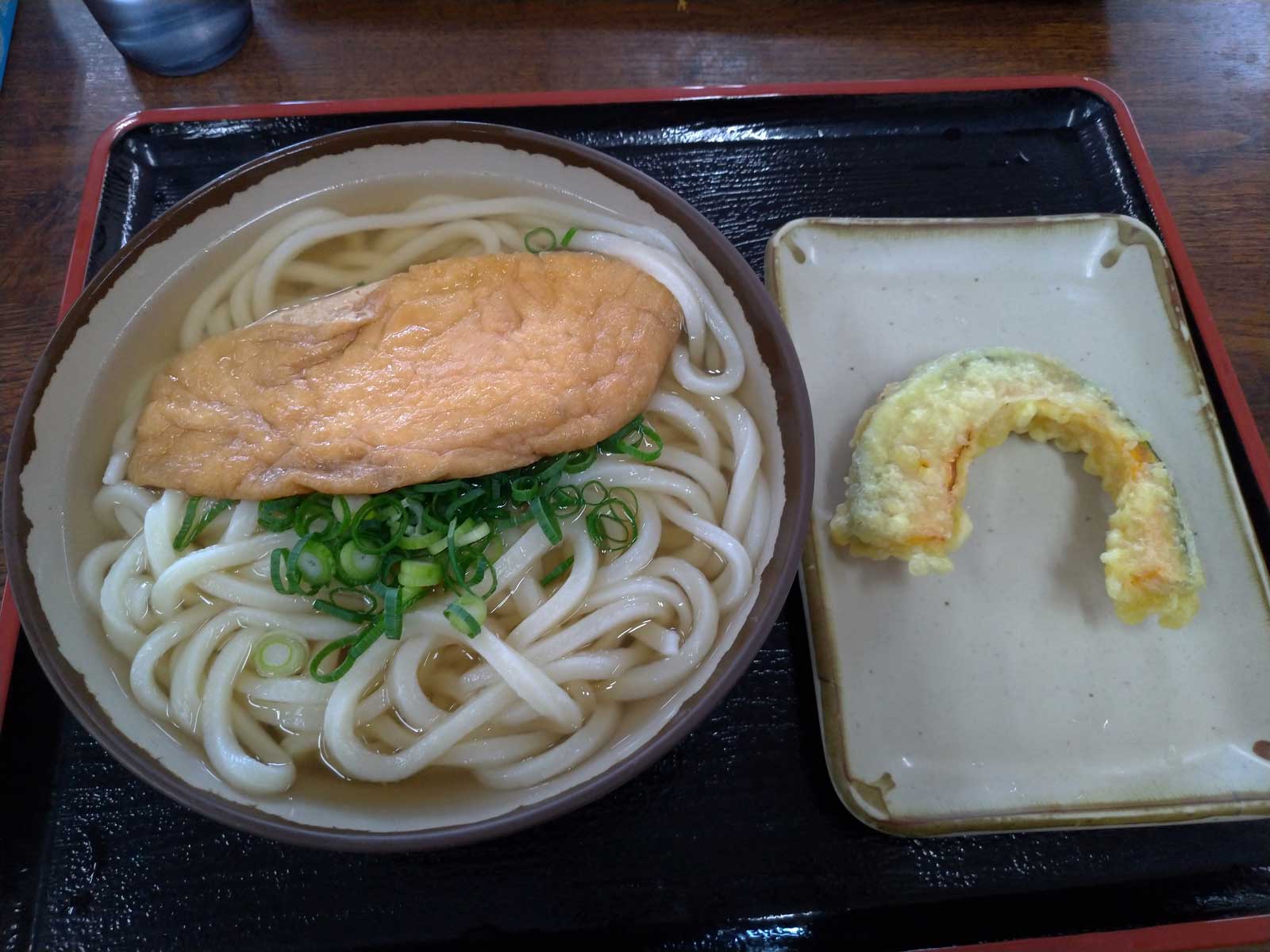 まずはお昼ごはんを「ぼっこ屋」で、きつねうどんを食べる。 メニューには「きつねうどん」というのは存在しないので、かけうどん+油揚げという組み合わせを自分で作らなくてはならない。