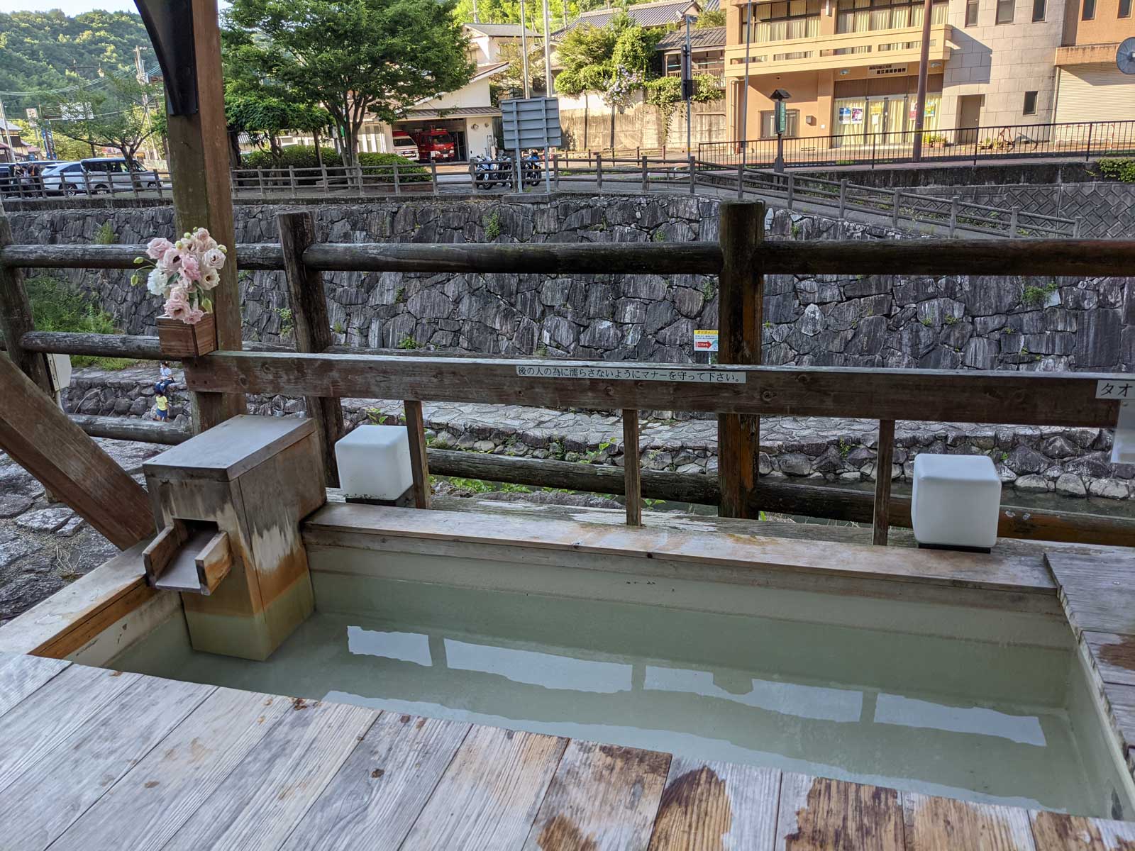道の駅しおのえに移動して、350円で濃厚なソフトクリームを食べたり、川沿いに下りて歩いたり、対岸には足湯があったので入ったり。