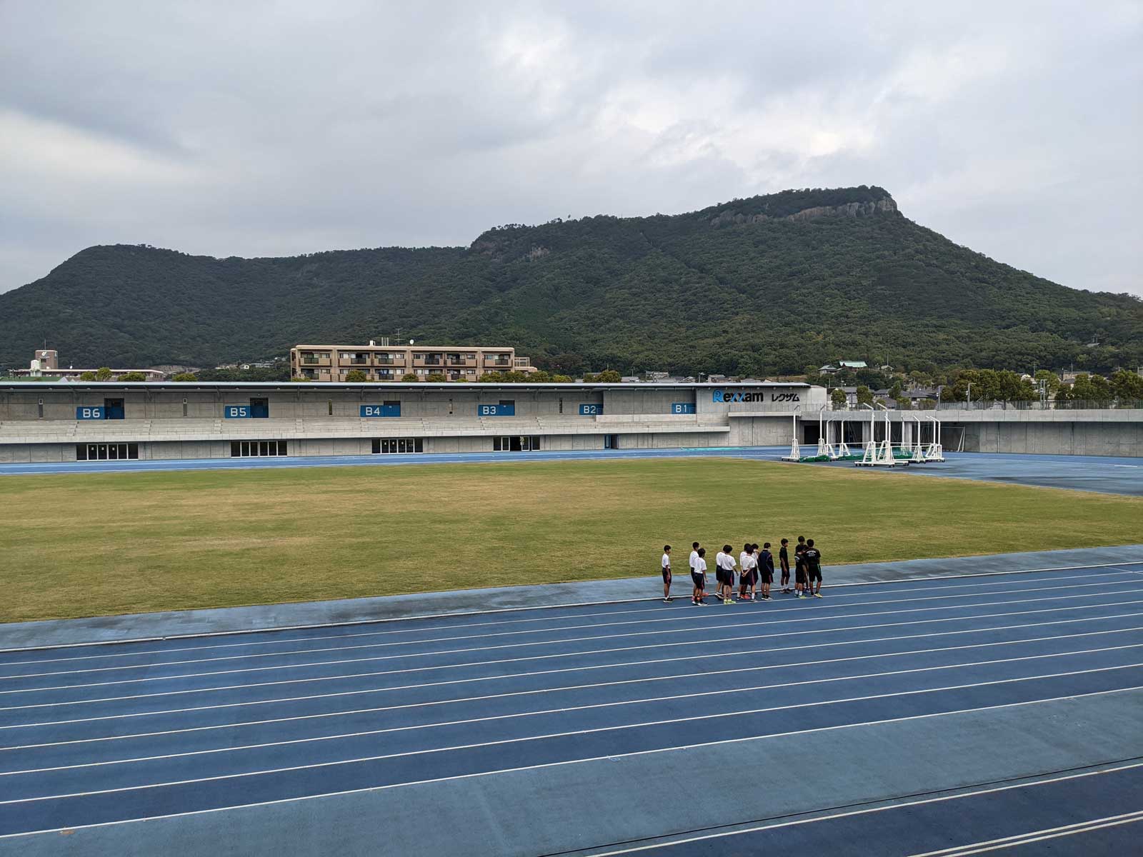 13時半からは屋島競技場へ。 14時から、短距離で早稲田→アシックスへと進んで活躍した、木村慎太郎さんが子供たちの指導に来てくれる。 今日は自分も競技場内に入る。 子供たちが集まっている時に、もう木村さんがやってきて、子供たちは急いでアップに行っていた。 木村さんもアップをしていた。