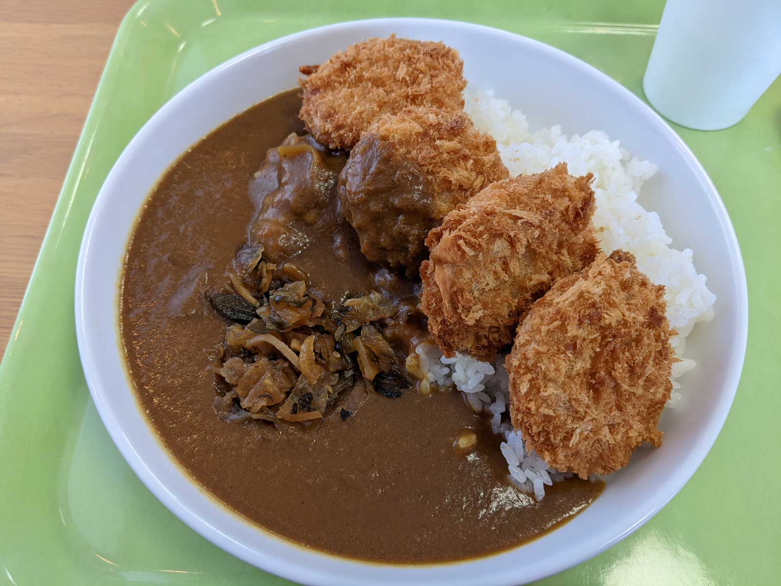 このスキー場には休憩所が1つ、レストランが1つしかないので、どこでお昼を食べるか、迷う心配がない。 休憩所では飲み物とカップラーメンしかない。 レストランはメニューが大山よりは豊富で、自分と次女はカツカレー、長男は塩ラーメン、三女はきつねうどんを食べた。