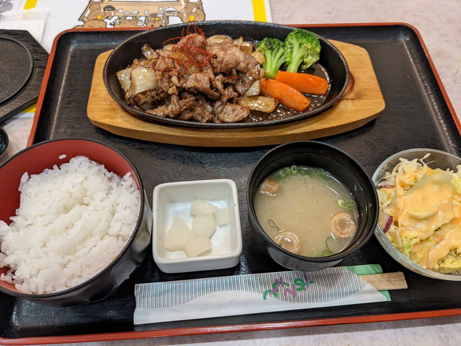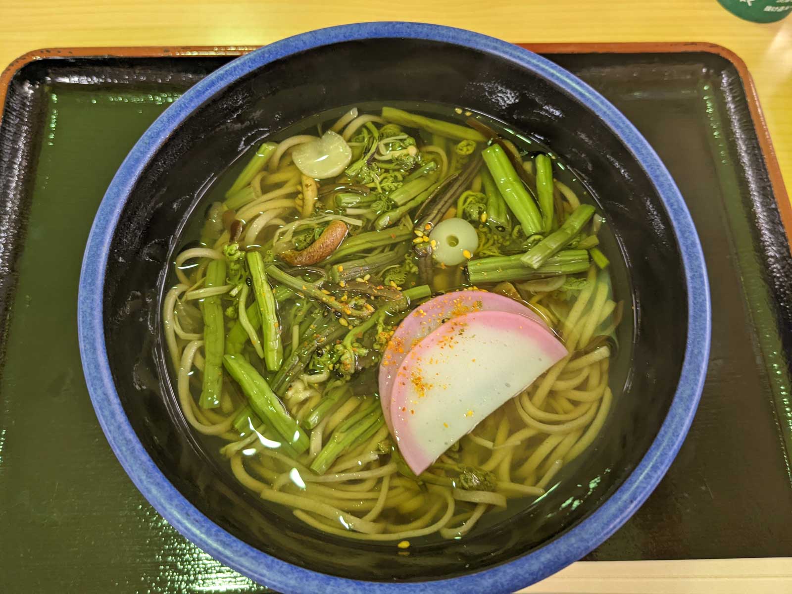 せっかく蒜山SAにいるので、ここでお土産を購入して、レストランで夜ご飯。 ジンギスカン定食を食べたのだが、スノボでかなり消耗したので、全然お腹がいっぱいになっていない。 レストランはちょっと値段が高いので、フオードコートに移動して、ここでさらに山菜そばを食べた。