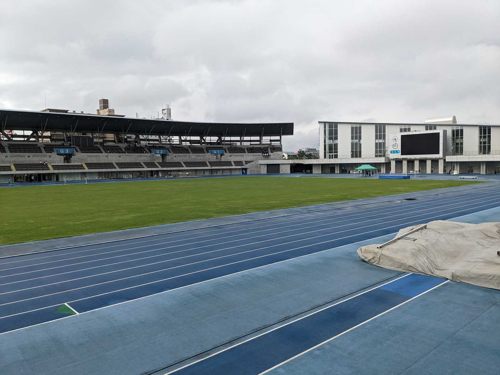 今回の記録会はかなり多くの選手がエントリーしていて、朝9時半から20時過ぎまでずっと競技が続く。 夜は主に長距離種目なので、高校生以上のエントリー者が多い種目だけれど。