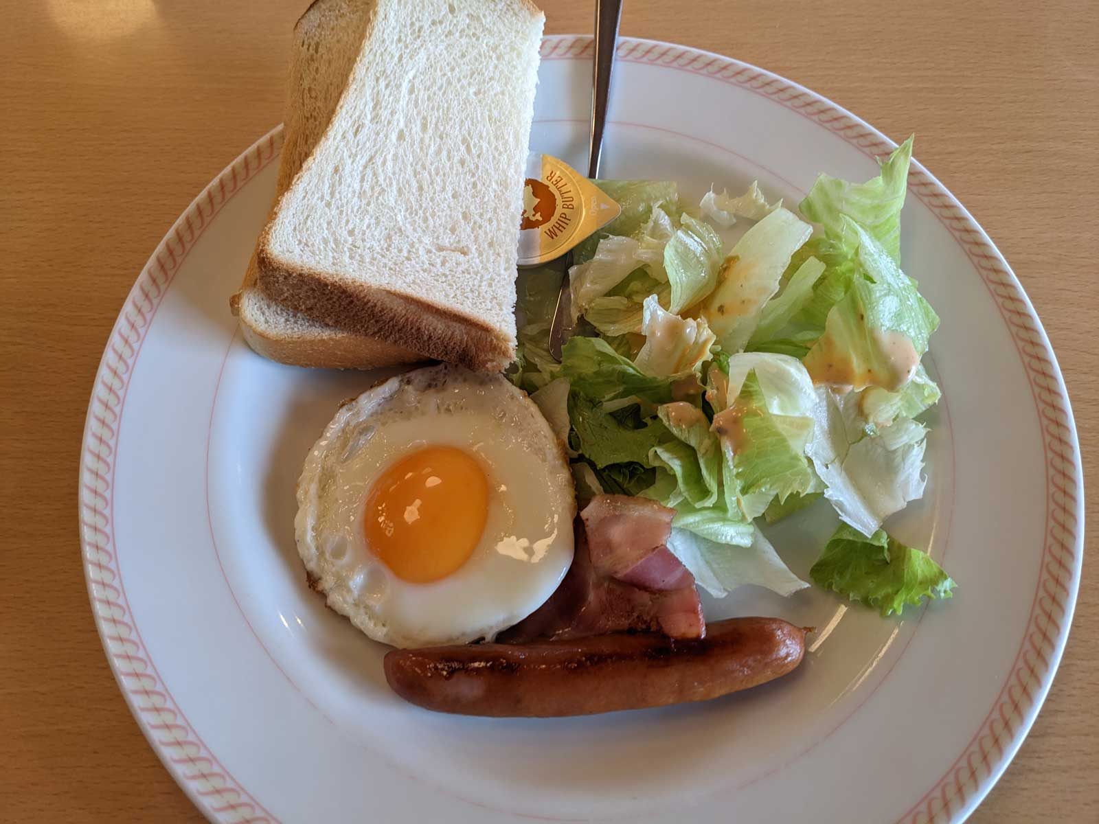 とりあえず朝ごはんはジョイフルへ。 すぐ横にあるガストは臨時休業のようだった。 そのためか、ジョイフルはけっこう賑わっていた。