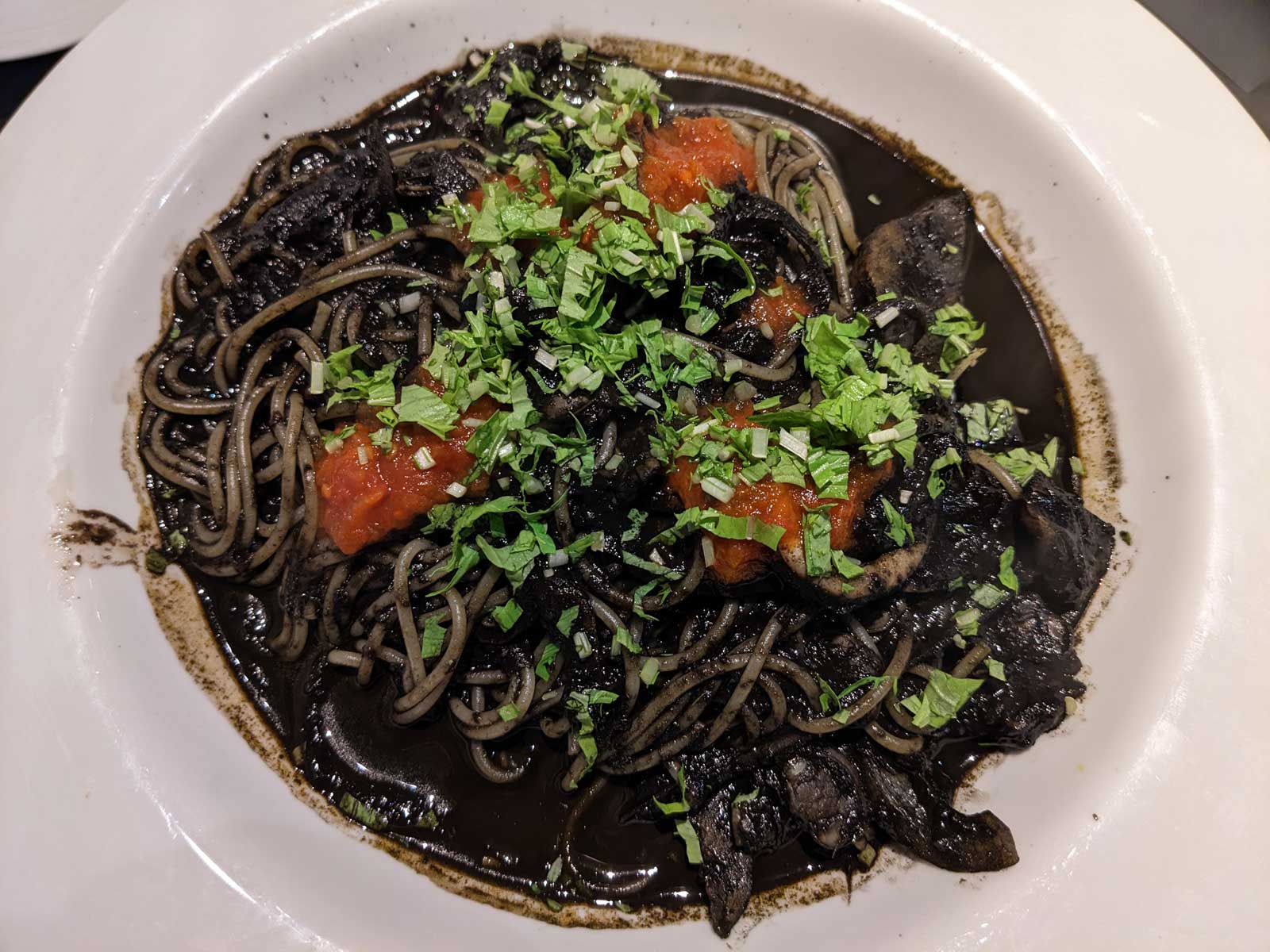 夜ご飯は三谷の「DEAR」でイカスミパスタを食べた。