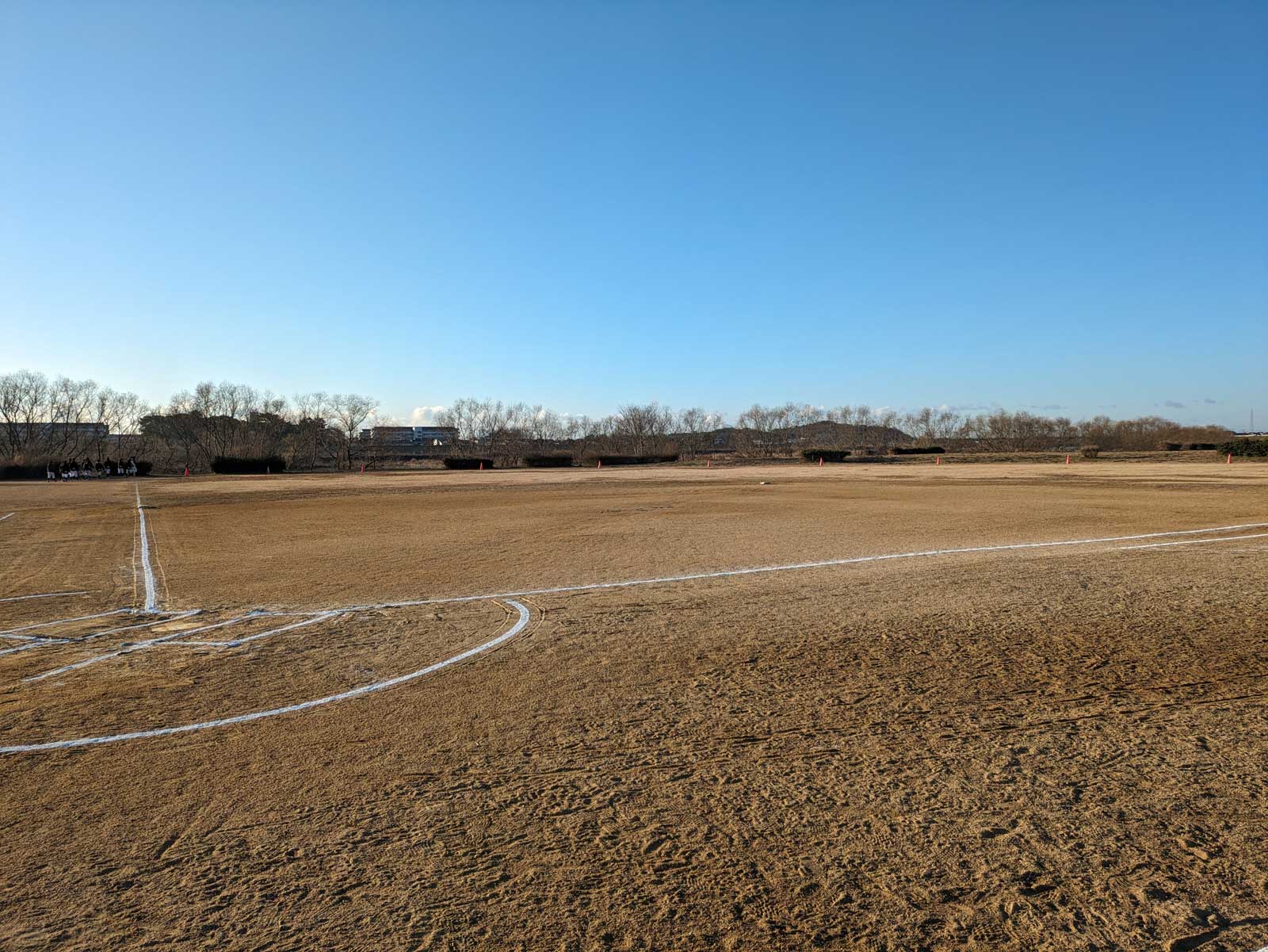 今日は加古川沿いの「加古川両荘河川敷グラウンド」という場所が試合会場。 ABCグラウンドがあって、決勝リーグはAグラウンドで行われる。 今日のグラウンドはバックネットしかないので、写真が撮りやすくて素晴らしい。