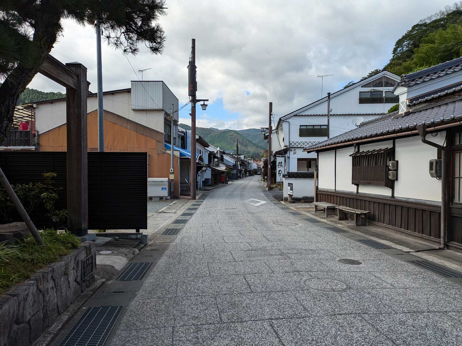 次は「勝山町並み保存地区」に行く。 ここは倉敷美観地区みたいな感じで、店がいくつもあって食べ歩きとかできるのかな?と思ったけど、町並みを保存するのが主目的で、特に観光的なお店はなかった。 一番奥に酒造があったので、日本酒を買ったが、それくらいしかここには見るものがなかった。 もう少し早い時間帯だったら喫茶店みたいなものも開いていたかもしれない。