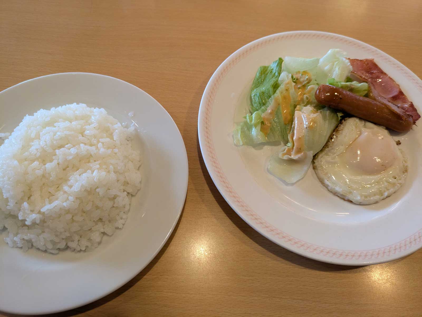 朝はジョイフルでモーニング。 目玉焼きとかのセットの場合、通常ではトーストなのだけど、今日はライスに変更してみた。 そしたら、ライスの量が結構多かったな。 目玉焼きやソーセージにライスはあうので、ライスでもありかもしれない。