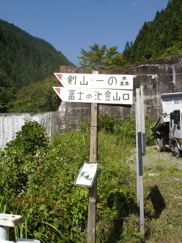 国道438号線をひたすら走って、見ノ越まであと12kmくらいのところで、「富士ノ池登山口入り口」という看板が見えてきた。 心配するほどでもなかった、すぐわかってよかった。