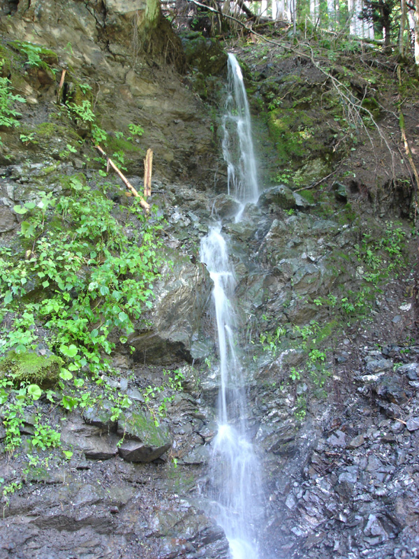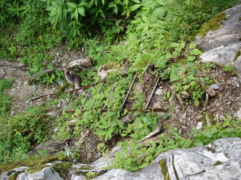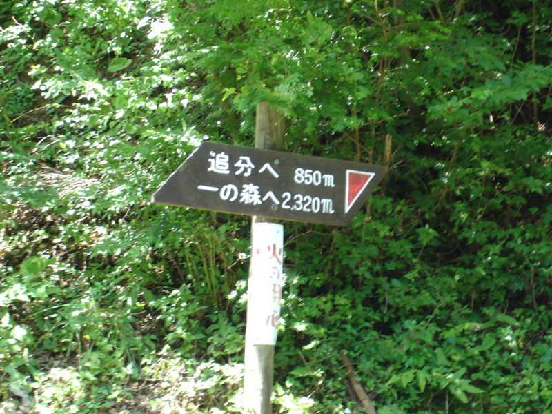 しばらく歩き追分に到着。 足がだるく、右膝が痛い。 ここから、コースタイムで90分の下りで駐車場だ。 このルートで最も急な箇所だ。