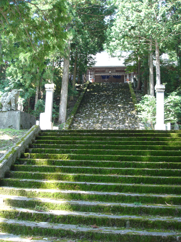 何度か林道を横切り、ようやく神社まで到着。 林道が工事と化してなければ、ここまでは車で来ることもできる。